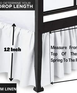1. Los faldones de cama con pliegues son adecuados para camas de 39″ de ancho y 75″ de largo, con una caída de hasta 12 pulgadas, lo que garantiza que todo debajo de su cama permanezca oculto.