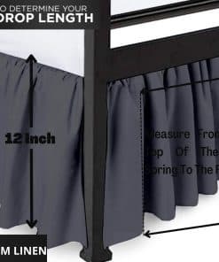 1. Los faldones de cama fruncidos son adecuados para camas de 78″ de ancho x 80″ de largo y se ajustan hasta una caída de 12 pulgadas, lo que asegura que todo debajo de su cama permanezca oculto.