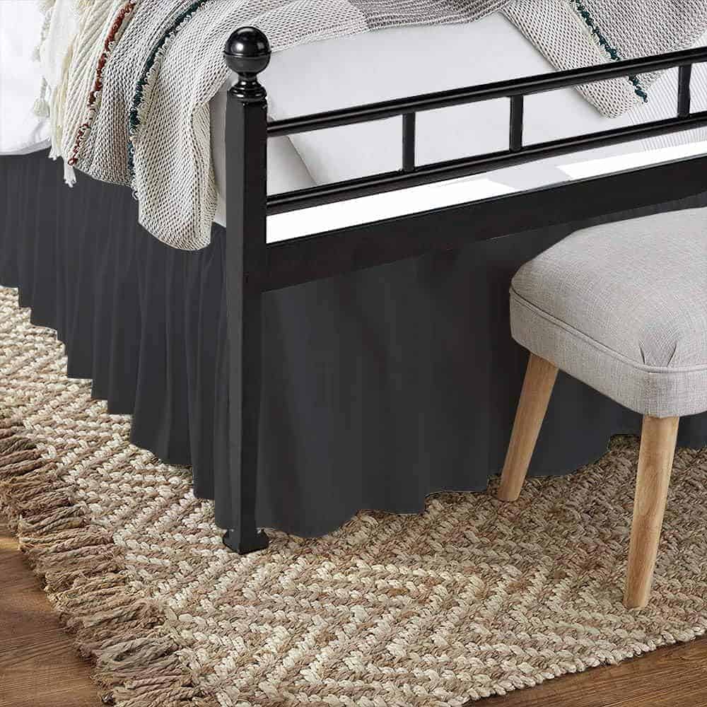 3. Estética elegante: Faldón de cama con pliegues en las esquinas, el diseño fruncido del faldón de cama agrega un elemento de elegancia y sofisticación a la apariencia general de la cama y de todo el dormitorio.