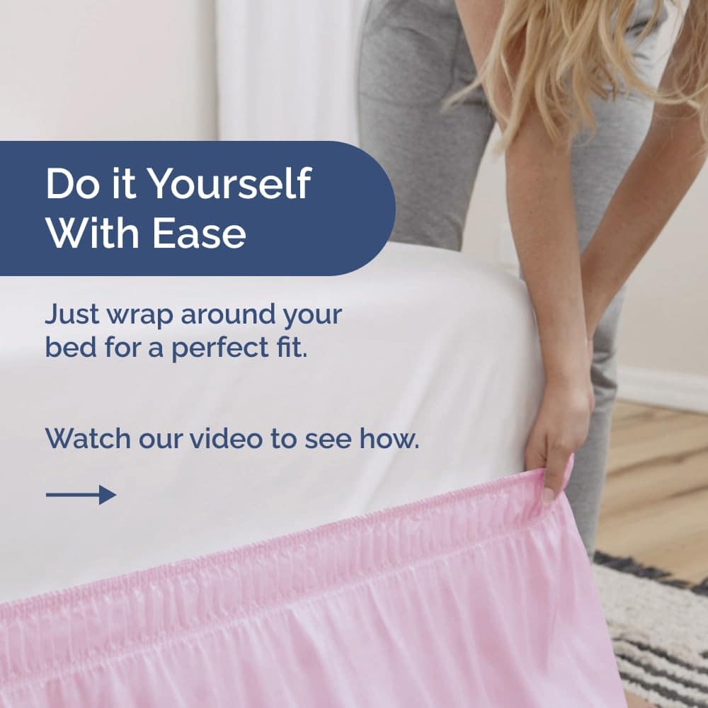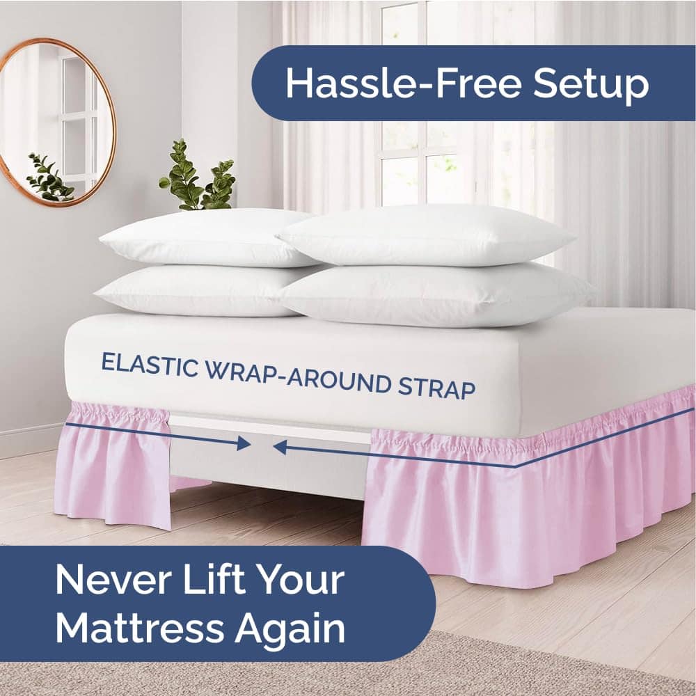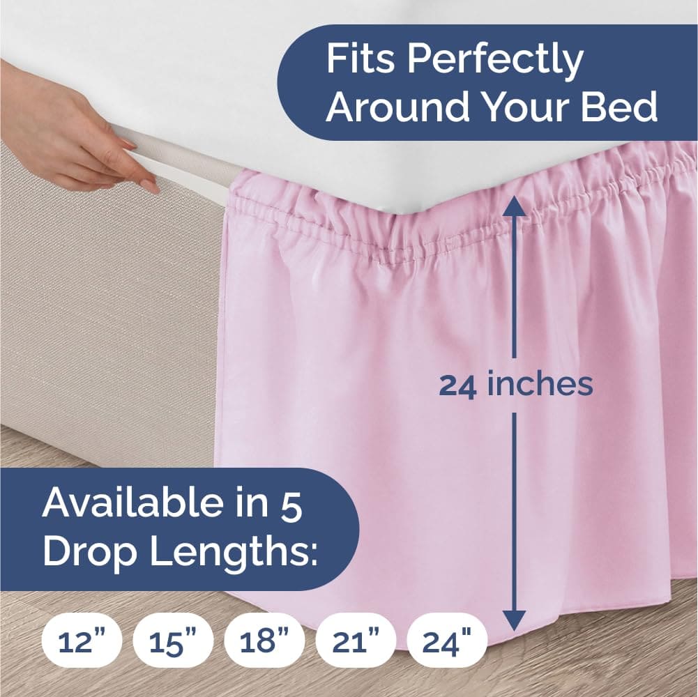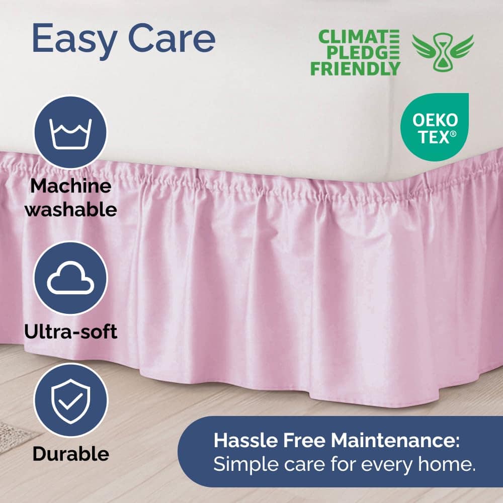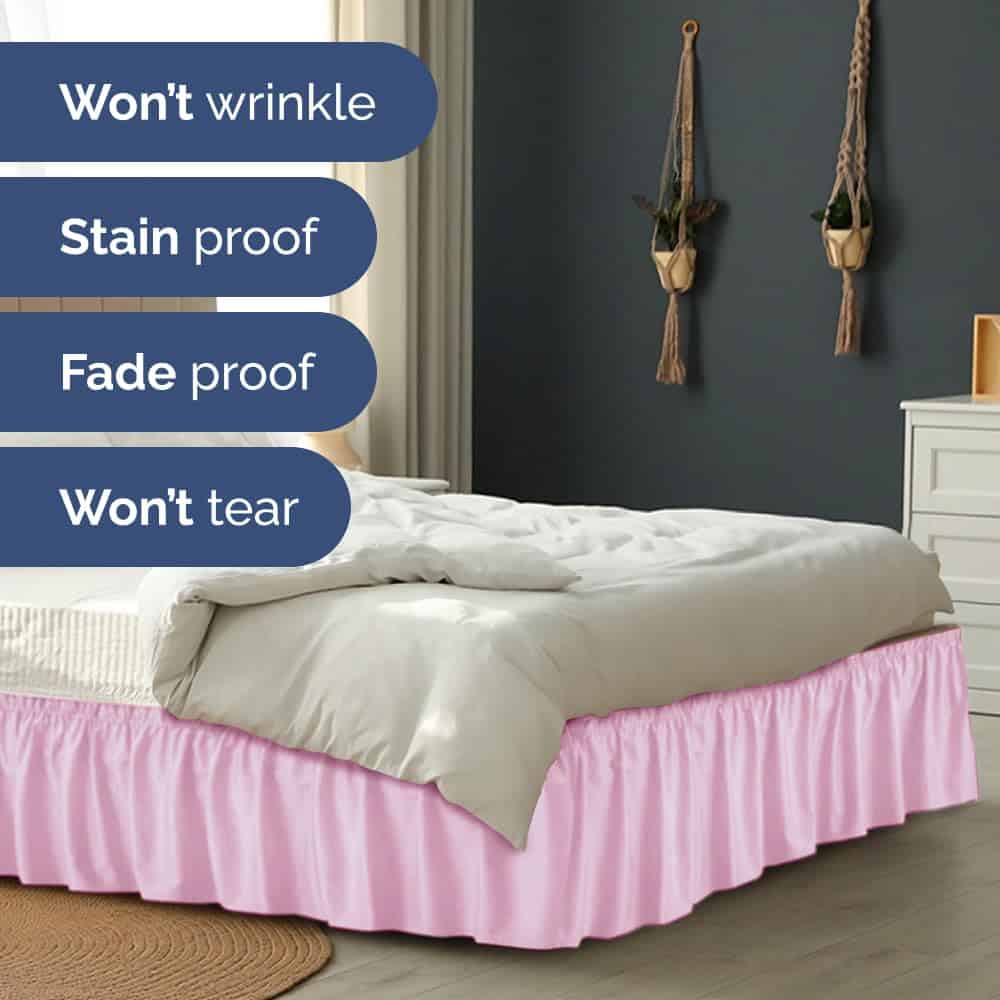 Faldón de Cama con Volantes Ajustables – Rosa Claro – para