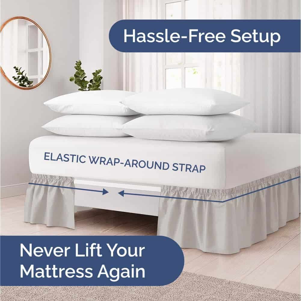 4. CONFIGURACIÓN SIMPLE: La mayoría de las faldas de cama pueden ser un dolor de cabeza para configurar. No te esfuerces levantando tu colchón por ti mismo. Pon y quita tu falda de cama completa con total facilidad y comodidad, sin necesidad de ayuda.