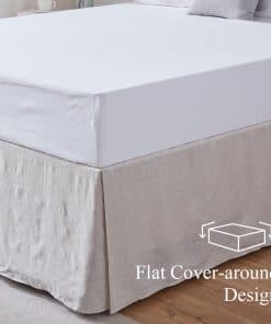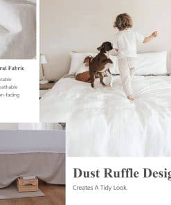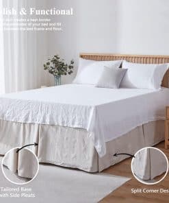 Material–Falda de cama: tela de LINO 100%, Plataforma: 100% Algodón. Nuestro material de lino se importa de Bélgica, Transpirable y Duradero. La falda de cama de lino ha sido certificada por OEKO-TEX STANDARD 100 por su producción de telas ecológicas, responsables y sostenibles. Elegir una tela Premium y de alta calidad puede ayudarlo a prolongar la vida útil de la ropa de cama.Ahorra tu dinero.Ahorra tu esfuerzo.