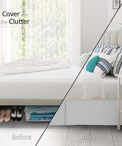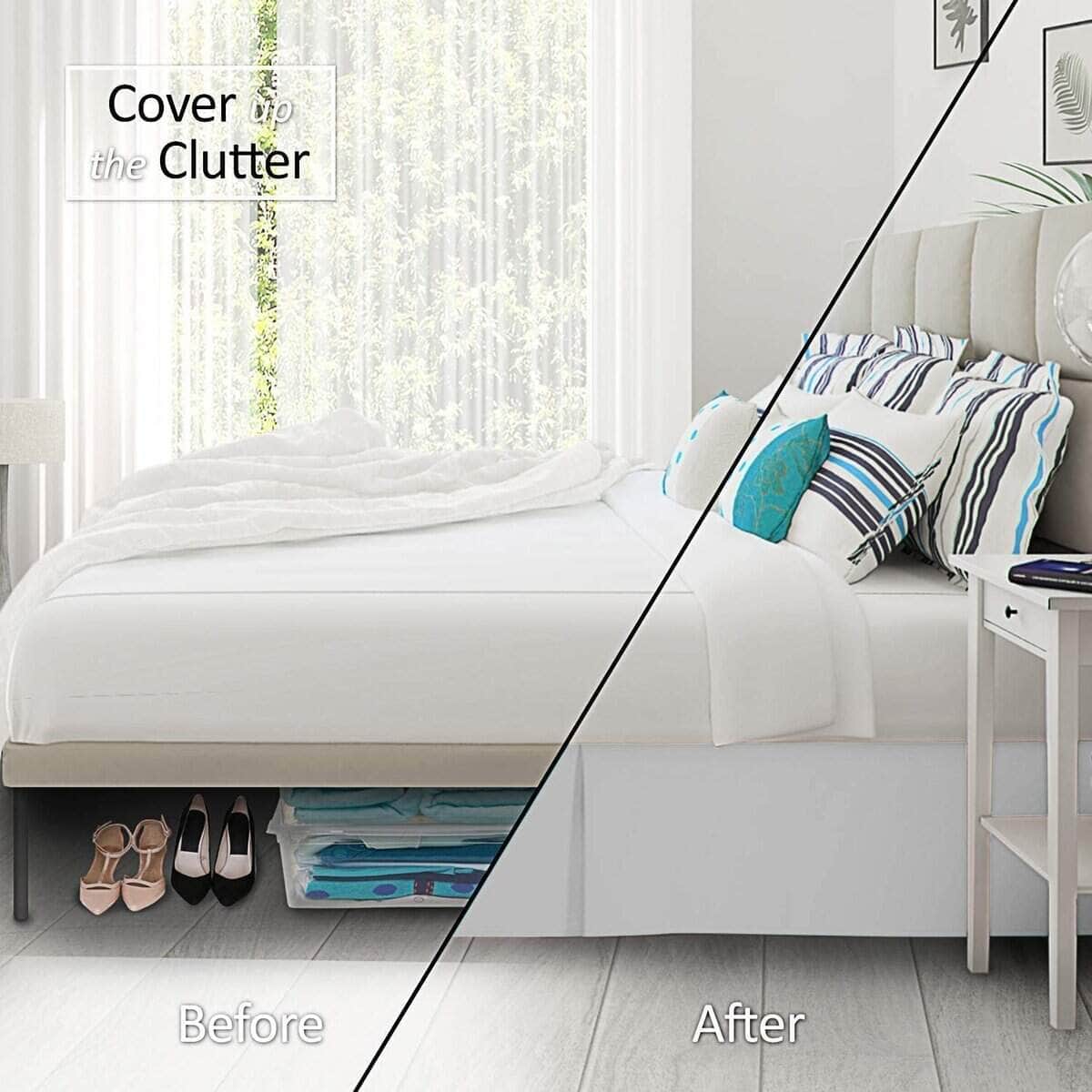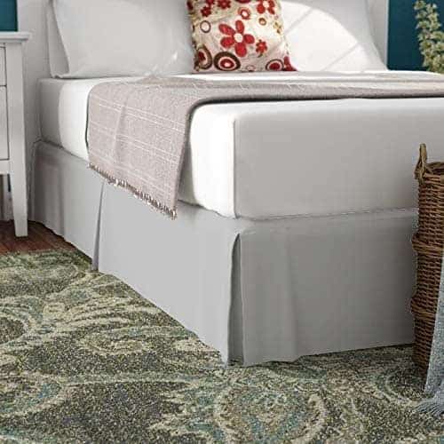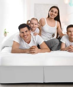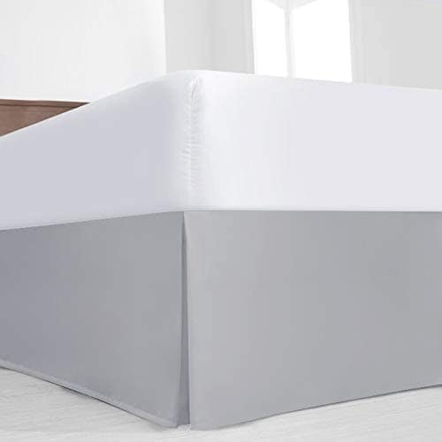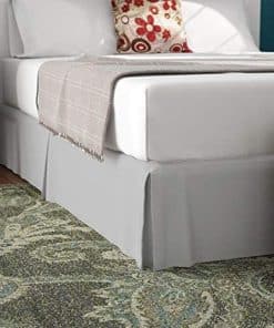 Faldón de Cama de Lujo de Tamaño King en Gris Claro con Caída de 12 Pulgadas – Faldón de Cama Plisado de Microfibra Premium de Doble Cepillado para Cubrir Cama y Somier – Ajuste Fácil, Resistente a Arrugas, Decoloración y Manchas. Nuestro faldón de cama King en gris claro es el toque perfecto para completar tu conjunto de cama. Hecho de microfibra de terciopelo cepillado 100% poliéster, es suave, cómodo y transpirable, además de añadir un aspecto real a tu dormitorio. El diseño plisado con esquinas plisadas crea un aspecto sofisticado y limpio en cualquier cama. Con un bolsillo extra de caída, la cantidad perfecta para ocultar tu somier o cualquier espacio de almacenamiento debajo de la cama que puedas utilizar. Este faldón de cama se mantiene sin arrugas sin necesidad de planchar, manteniendo tu cama con un aspecto impecable en todo momento. Fácil de cuidar, simplemente lávalo a máquina en agua fría con colores similares, sécalo en ciclo bajo y no lo expongas a lejía. El material de microfibra es resistente a las arrugas y decoloración, por lo que no encogerá con el tiempo. Creemos tanto en la calidad de nuestros productos que ofrecemos una garantía 100% libre de riesgos de 30 días. Si por alguna razón no estás satisfecho con tu compra, simplemente contáctanos para devolver el artículo y obtener un reembolso completo. Agrega nuestro faldón de cama de microfibra de lujo a tu dormitorio hoy y experimenta la diferencia que puede hacer.