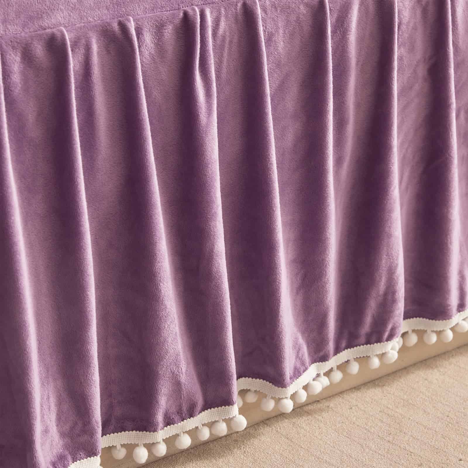 Faldón de Cama de Terciopelo con Pompones, -Morado