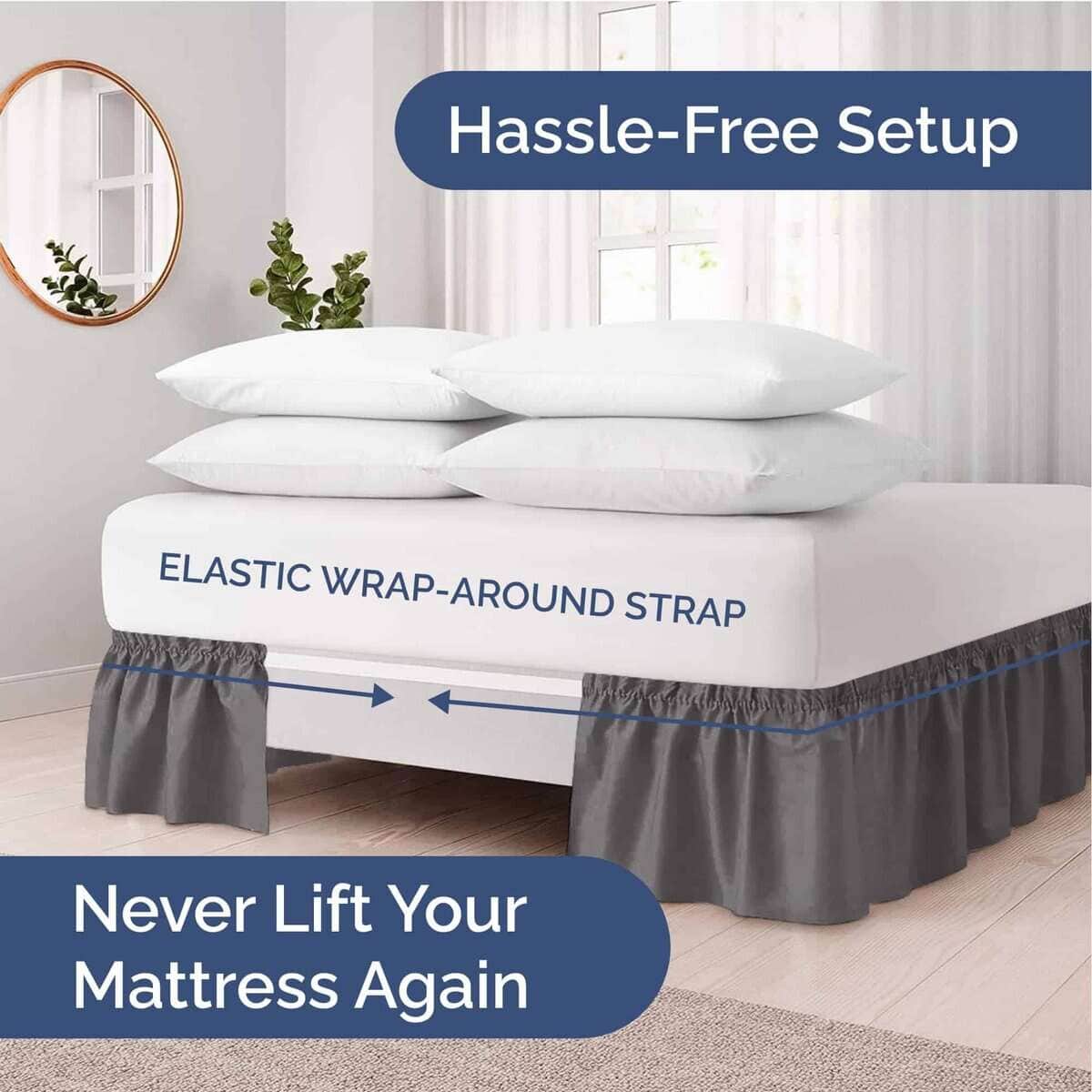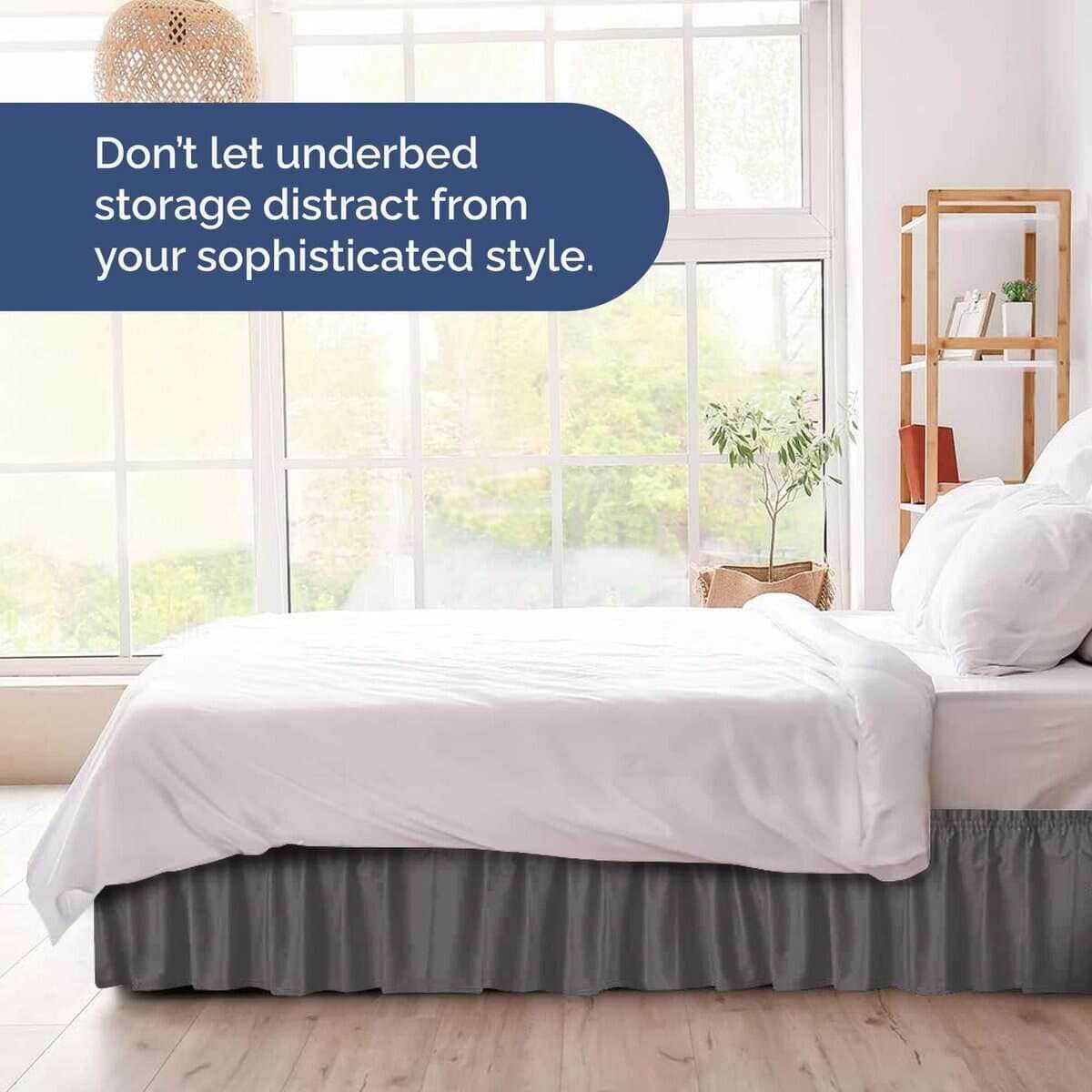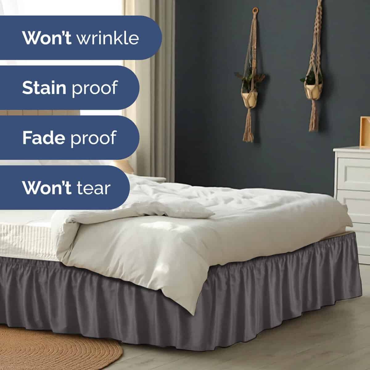 Faldón de Cama de Volantes para Cama Queen – Gris Oscuro –