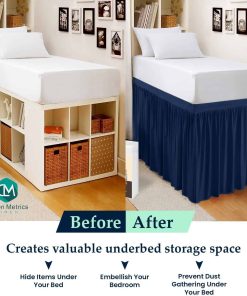 El faldón de cama para dormitorio universitario extra largo twin XL está hecho de una suave y duradera mezcla de algodón/poliéster (60% ALGODÓN / 40% POLIÉSTER) y está inteligentemente diseñado con un lado de velcro/elástico y tres lados de tela. Este faldón de cama con rizos reunidos tiene un hermoso aspecto. Colgará hermosamente y ayuda a ocultar el espacio debajo de la cama. Este faldón de cama universitario esencial tiene una longitud generosa que llega fácilmente al suelo y esconderá cualquier almacenamiento debajo de la cama, formas irregulares de somieres, marcos de cama y postes, resguarda el polvo y partículas que de otra manera se acumularían debajo de la cama o simplemente para darle a su cama un aspecto uniforme y elegante. Lavable a máquina en agua fría y se seca rápidamente en secadora a baja temperatura.
