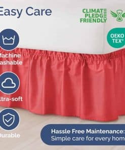 Hecho de microfibra cepillada premium, nuestro faldón de cama tamaño queen de CGK Linens no se rasgará, desgarrará, desvanecerá ni encogerá. El elástico de CGK Linens actualizado garantiza que el faldón se mantenga en su lugar, sin importar los movimientos. Fácil de poner y quitar sin tener que levantar el colchón tú mismo. Disponible en 19 variaciones de color para combinar con cualquier decoración. Limpieza sencilla en lavadora para mantener tu faldón de cama tamaño queen siempre limpio.