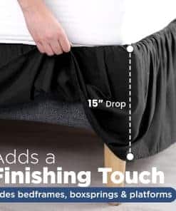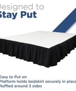 Obtén un aspecto elegante y estilizado con el Faldón de Cama Ruffle Básico Martex King de 15 pulgadas de caída. Este faldón de cama contemporáneo ofrece una solución elegante para terminar limpiamente el espacio entre la cama y el suelo. Certificado OEKO-TEX, por lo que dormirás con la tranquilidad de saber que el Faldón de Cama de Microfibra Básico Martex fue creado sin el uso de productos químicos dañinos. Viste tu cama con lujo y calidad con el faldón de microfibra cepillada. Este faldón de cama cuenta con una caída de 15 pulgadas que oculta tu somier y tu base de cama, creando un aspecto ordenado, unificado y contemporáneo. Su longitud extra con una apariencia clara y suave cubre tu cama perfectamente con el ajuste perfecto. Además, las esquinas en inglete y los pliegues laterales traen elegancia y estilo a la decoración de tu ropa de cama. Altamente resistente a las manchas, nuestro faldón de cama tiene una tela fuerte y duradera que mantiene el brillo y la forma para garantizar un aspecto terminado para tu dormitorio. Disponible en diferentes tamaños y colores para que coincida con tus accesorios para el hogar, te permite elegir el que mejor se adapte a los interiores de tu habitación y se ajuste a tu cama. Varios colores y tamaños disponibles. El faldón de cama crea un borde ordenado alrededor del perímetro de tu cama, ocultando discretamente almacenamiento bajo la cama, somieres y bases de cama metálicas. Resistente a las arrugas y a la decoloración. El faldón de cama de microfibra actúa como un faldón de polvo para ayudar a repeler el polvo de debajo de la cama, y se puede lavar a máquina según sea necesario.
