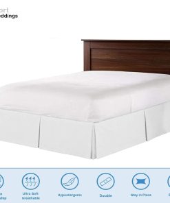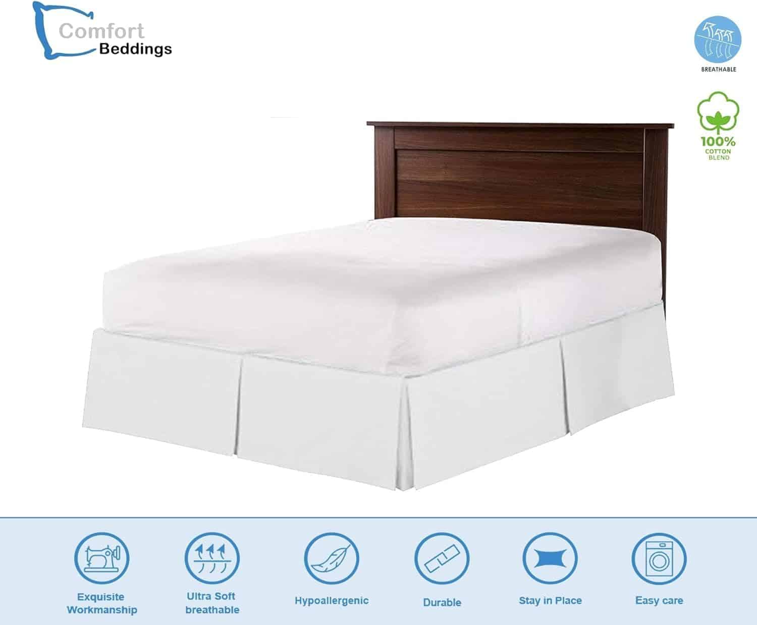 Faldón de cama tamaño king estilo plisado de Comfort Beddings. Este faldón de cama tamaño king de mezcla de algodón 100% en color blanco sólido cuenta con una longitud de caída de 23″ para un ajuste perfecto. Nuestro faldón de cama a medida está hecho con la tela de más alta calidad, diseñado para durar años. Está fabricado con una suave y duradera mezcla de tejido de algodón/poliéster (60% de algodón/40% de poliéster) que garantiza resistencia y durabilidad. La plataforma está hecha de la misma tela que evita desgarros y mantiene el faldón de cama en su lugar. El elegante diseño plisado agrega un toque de elegancia y sofisticación a cualquier dormitorio. Meticulosamente confeccionado, este faldón de cama presenta un pliegue en los tres lados con esquinas divididas para un ajuste perfecto. Ideal para cualquier habitación de tu casa, ya sea el dormitorio principal, la habitación de invitados, la habitación de los niños, RV o casa de vacaciones. Es también una excelente idea de regalo para mujeres y hombres en ocasiones especiales como San Valentín, Día de la Madre, Día del Padre, Año Nuevo y Navidad. Mantener este faldón de cama es fácil, simplemente lavar a máquina en frío en un ciclo suave, sin uso de lejía. Secar a baja temperatura y retirar inmediatamente. Se puede planchar caliente según sea necesario. Nuestros faldones de cama de mezcla de algodón premium son fáciles de cuidar, duraderos, resistentes a las arrugas y al desvanecimiento. Tu comodidad y seguridad son nuestra prioridad, por eso cada uno de nuestros faldones de cama es sometido a rigurosas revisiones de calidad para asegurar que cumple con los más altos estándares. Cada pulgada de nuestra tela es medida individualmente y cada lino es cosido a la perfección para garantizar su calidad. Antes de ser empacado, cada faldón de cama es inspeccionado minuciosamente para asegurarnos de que esté impecable y perfecto.