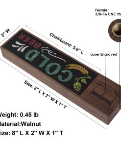 Estos mangos de grifo de kegerator con letras monogramadas son únicos para restaurantes, bares, fabricantes de soda, cerveceros caseros, eventos, bodas ¡y mucho más! La magia del mango de grifo proviene de una superficie de pizarra borrable de doble cara que te permite escribir lo que tienes de barril. Medidas: Aproximadamente 8″ de largo x 2″ de ancho x 1″ de grosor. Inserto de pizarra: 5.9″ de largo. Inserto roscado: rosca UNC de 3/8». Material: madera de nogal natural. Grabado: Un lado. El grifo no está incluido. Pizarra en la parte frontal del mango para escribir tu cerveza actual.