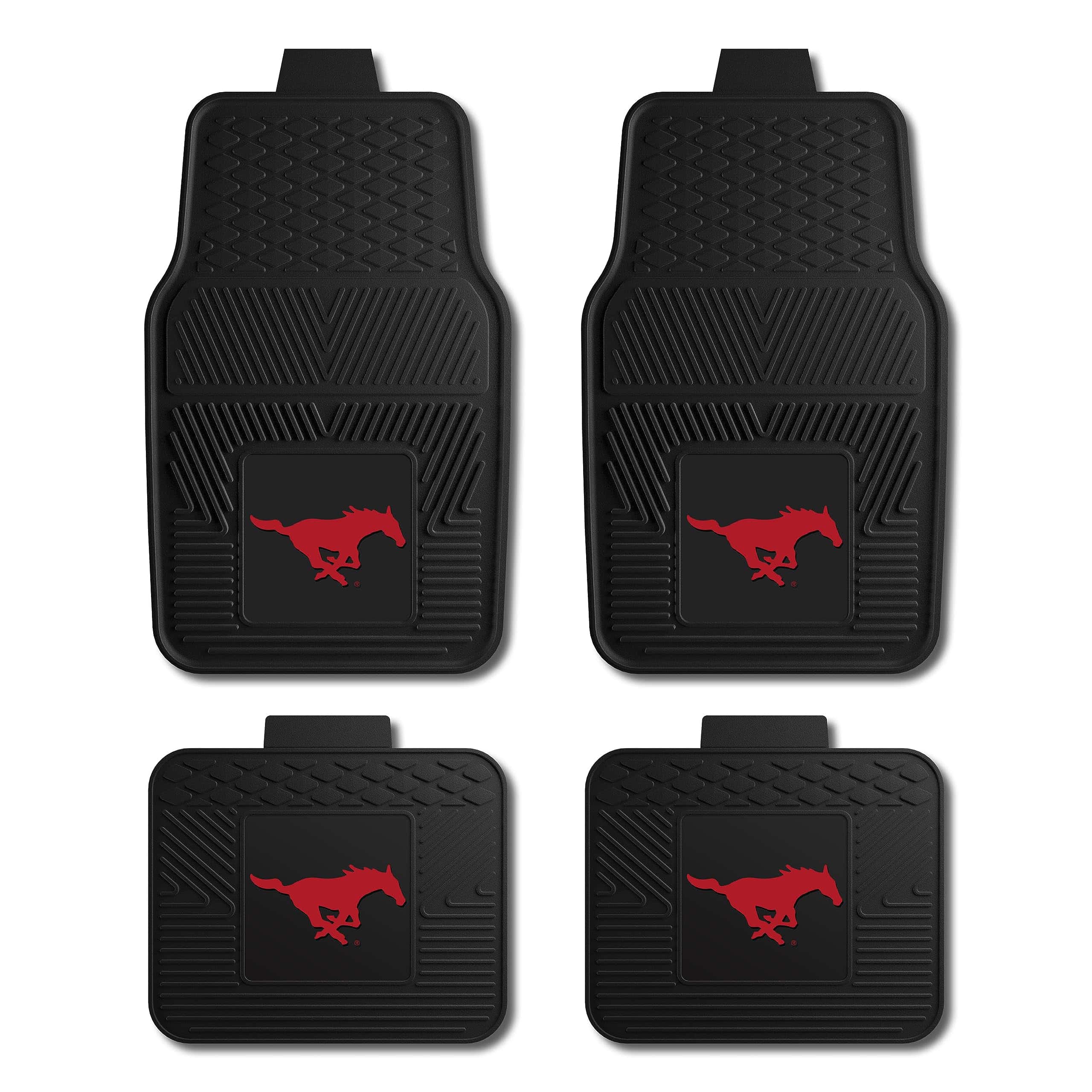 Fanmats Tapetes para autos de Southern Methodist University Mustangs – Rojo Juego de 4 tapetes para autos, SUV, camionetas – Protección contra todo clima, Diseño de Reservorio Profundo, Universal-3D logotipo NCAA-29 x17 Delantero -14 x17 Tapete trasero