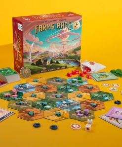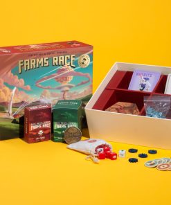 Farms Race es un juego de estrategia de 1-2 horas en el que animales fascistas se lanzan nukes y luchan por el control del campo de batalla. Reúne recursos, construye y ¡prepárate para violar seriamente los convenios de Ginebra con tal de ganar el juego! La Edición Deluxe incluye todo lo necesario para jugar Farms Race, además de contenido de expansión, componentes de mayor calidad y bonificaciones adicionales para enriquecer tu experiencia de juego. ¡Prepárate para una experiencia épica de estrategia y diversión en familia!