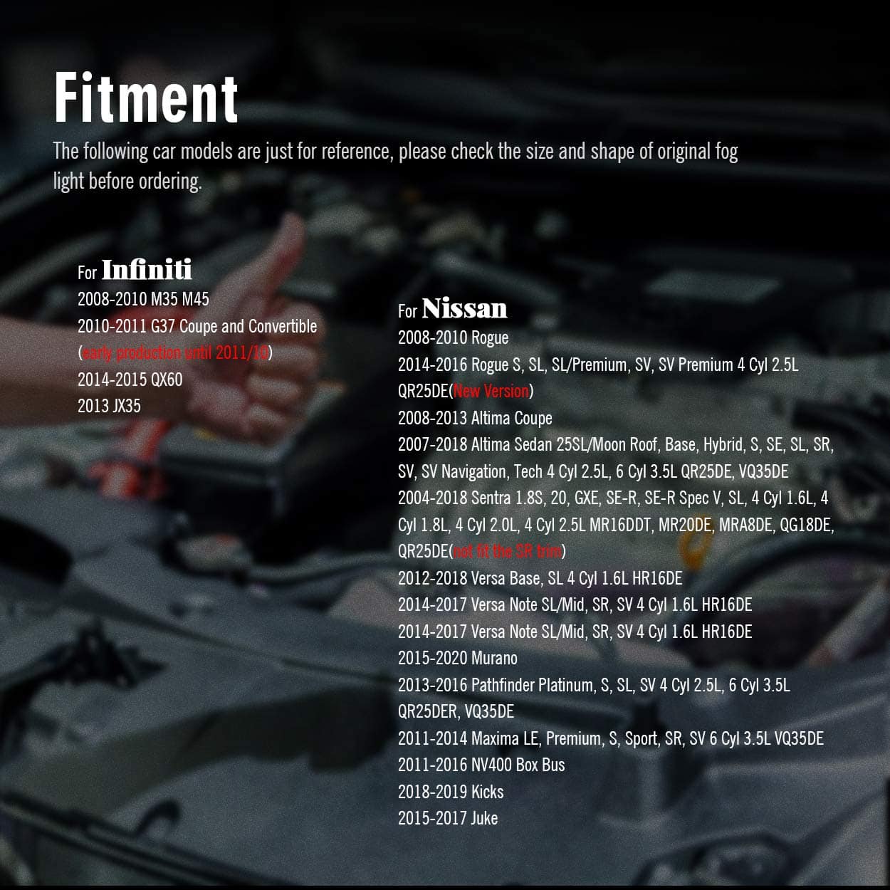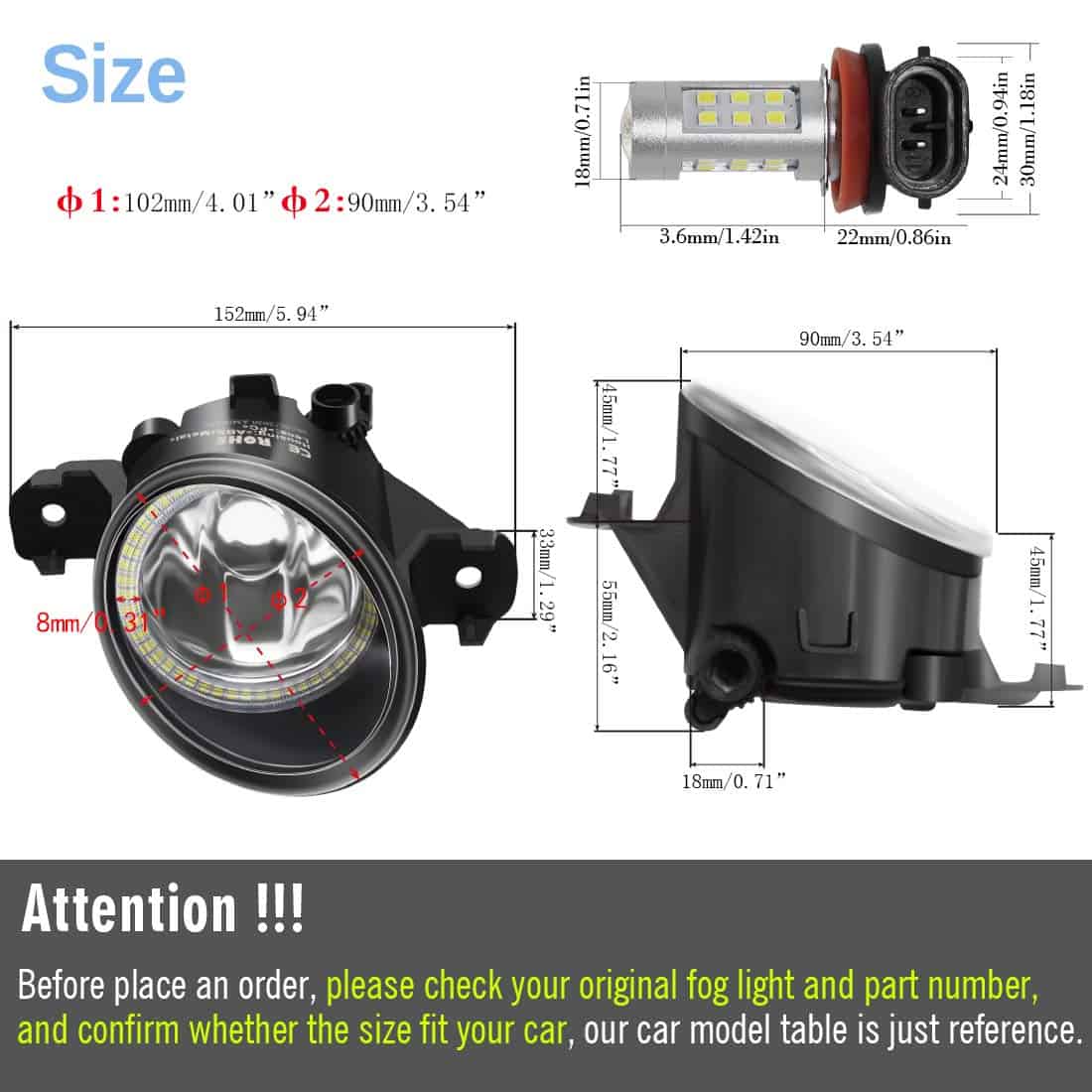 (Los siguientes modelos de coches son solo de referencia, por favor verifica el tamaño y número de parte del faro de niebla original antes de ordenar)
