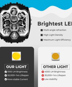 Luz Led Offroad, ¡hecha con amor y gratitud! La necesidad de visibilidad, en condiciones de poca luz u oscuras, es crucial para todos los conductores. Es por eso que nos esforzamos mucho para proporcionarle faros de conducción de inundación led premium que están diseñados para emitir luz súper brillante para que pueda conducir de forma segura y fácil cuando está oscuro. Agregarlos puede mejorar enormemente su visibilidad en entornos de poca luz. Estos faros de pod led funcionan bien y harán que su vehículo se destaque. Diseñados con gran cuidado, los faros led de off road para camiones u otros vehículos son ideales para llevar comodidad, clase y estilo a su vida! ESPECIFICACIONES Potencia: 90W Voltaje: 12-24V DC Chips LED: LED de alta intensidad Lúmenes: 8000LM / PCS. Material: Carcasa de aleación de aluminio fundido a presión duradera, lente dura-PC Temperatura de funcionamiento: -40 C-70 C Temperatura de color: 6500K Vida útil: 50000 horas Resistente al agua: IP67 EL PAQUETE INCLUYE 1 x 7 «Faro de LED para niebla 1 x Kits de instalación 1 x Soporte de montaje APLICACIONES Iluminación Off Road: Compatible con jeeps, 4×4, Coches, ATVs, UTVs, SUVs, camiones, remolques, montacargas, trenes, barcos, autobuses, iluminación exterior, etc. Otra Iluminación: excavadoras, topadoras, rodillos compactadores, grúas, tractores, cosechadoras, sembradoras de granos, segadoras, quitanieves, camiones de bomberos, vehículos de rescate, camping, minería, iluminación de construcción, etc. Iluminación Doméstica: jardín, patio trasero, garaje o iluminación interior. (Nota: Use un transformador / convertidor de voltaje para convertir de 110-120V CA a 12V CC para uso en interiores.) ¡Entonces, ¿a qué estás esperando? Agrega estos pod de luces LED a tu cesta y prepárate para mejorar tus experiencias!