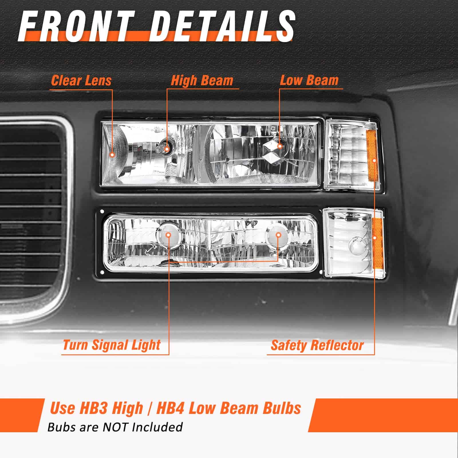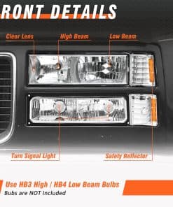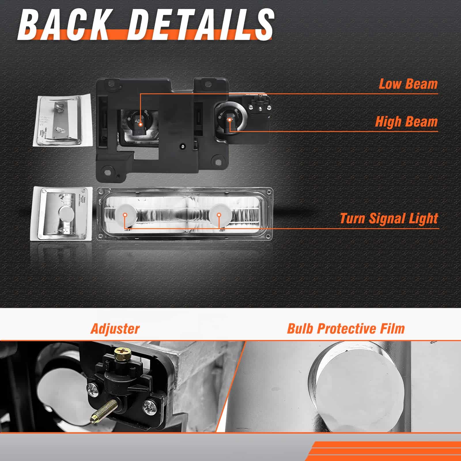1. Compatibilidad con vehículos: Faro delantero compatible con 1994-1998 Chevrolet C/K /C10 1500/2500/3500/1994-1998 Chevrolet Silverado/1994-1998 Chevrolet Tahoe/Suburban; ¡NO SON COMPATIBLES CON MODELOS DE GMC!.