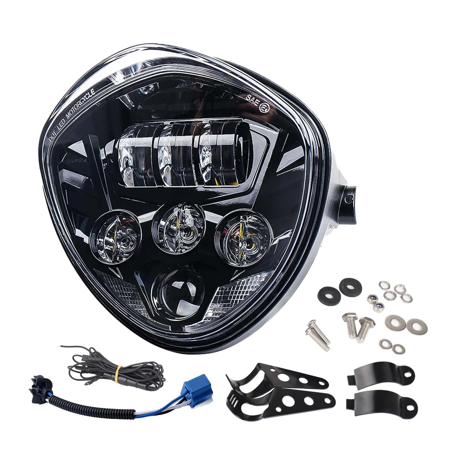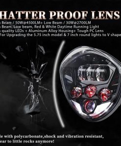 Faro delantero de motocicleta LED de 7 pulgadas de AVOUZ con luces DRL blancas y rojas para mejorar la visibilidad y el estilo de tu motocicleta. Este faro delantero de motocicleta en forma de diamante de 7 pulgadas presenta un diseño innovador que rompe los límites de los faros redondos convencionales en el mercado. La instalación es más sencilla que nunca, ya que no se requiere un cubo de faro adicional, simplemente reemplaza directamente todo el conjunto del faro. Además, este faro incluye un exclusivo diseño de DRL rojo y blanco que hace que tu motocicleta sea aún más atractiva y llamativa. El kit de montaje con soportes universales se adapta a cualquier motocicleta con tubos de 1.38 a 1.69 pulgadas, lo que lo hace compatible con una amplia variedad de marcas y modelos como Harley Davidson, Kawasaki, Ducati, Suzuki, Yamaha, Honda, y más. El faro delantero está fabricado con la última tecnología LED y chips LED de alto rendimiento, lo que garantiza una iluminación extremadamente brillante en comparación con las lámparas de fábrica OEM. La doble lente del faro proporciona una mayor luminosidad que los faros de lente única, lo que lo hace mucho más seguro para la conducción nocturna al evitar deslumbrar a otros conductores. Con una luz blanca pura de 6000K, clasificación a prueba de agua IP67, y una temperatura de trabajo de -40 a 80 grados, este faro delantero LED es duradero y resistente a las condiciones climáticas adversas. Además, su cuerpo de aluminio actúa como disipador de calor, lo que garantiza una vida útil hasta 10 veces más larga que los faros típicos. Con una tecnología óptica de vanguardia, este faro delantero LED puede funcionar hasta 50000 horas sin sacrificar su rendimiento. Antes de comprarlo, asegúrate de verificar si se ajusta a tu motocicleta para disfrutar de una iluminación excepcional y elegante en tus viajes.