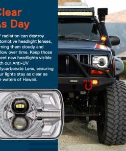 4. CLARO COMO EL DÍA – La radiación UV puede destruir las lentes de los faros LED H6052 de 5 por 7 pulgadas y 2b1, volviéndolas nubladas y amarillas con el tiempo. Mantén esos nuevos faros de aluminio resistentes visibles con nuestra lente de policarbonato anti-UV, asegurando que tus luces se mantengan tan claras como las aguas de Hawaii.