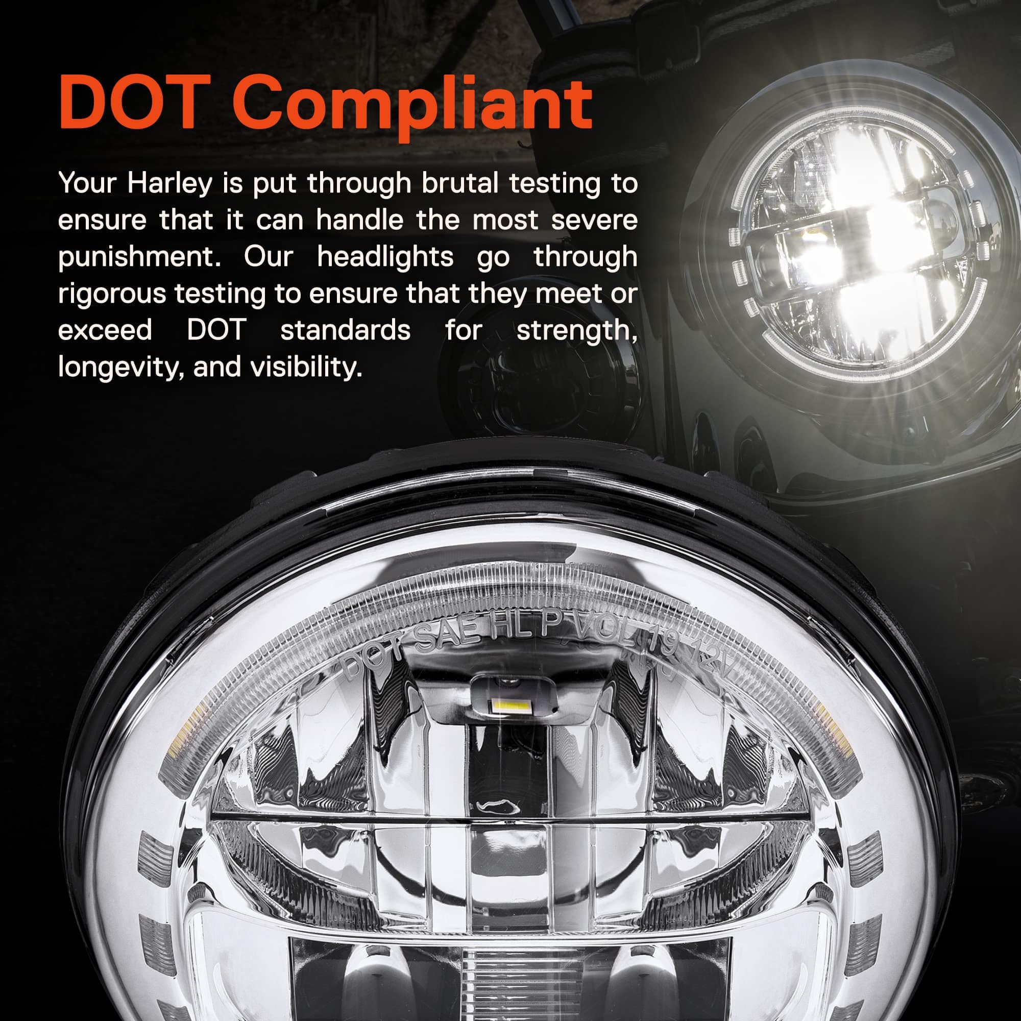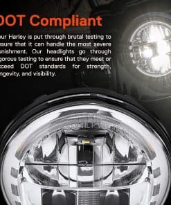 4. DOT COMPLIANT – Tu Harley se somete a pruebas brutales para asegurar que pueda soportar el castigo más severo. Nuestros faros pasan por pruebas rigurosas para garantizar que cumplan o excedan los estándares DOT de resistencia, longevidad y visibilidad.