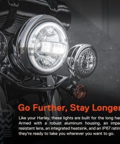 1. GO FURTHER, STAY LONGER – Como tu Harley, estas luces están construidas para el largo recorrido. Equipadas con una resistente carcasa de aluminio, una lente resistente a impactos, un disipador de calor integrado y una calificación IP67, están listas para llevarte a donde quieras ir.