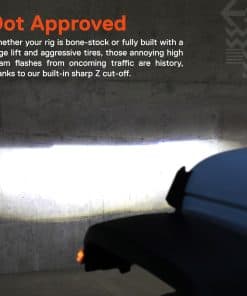 3. APROBADO POR LA DOT – Ya sea que tu vehículo esté de serie o completamente modificado con una gran elevación y neumáticos agresivos, los molestos destellos de luz alta de otros conductores son cosa del pasado, gracias a nuestro nítido corte Z integrado.