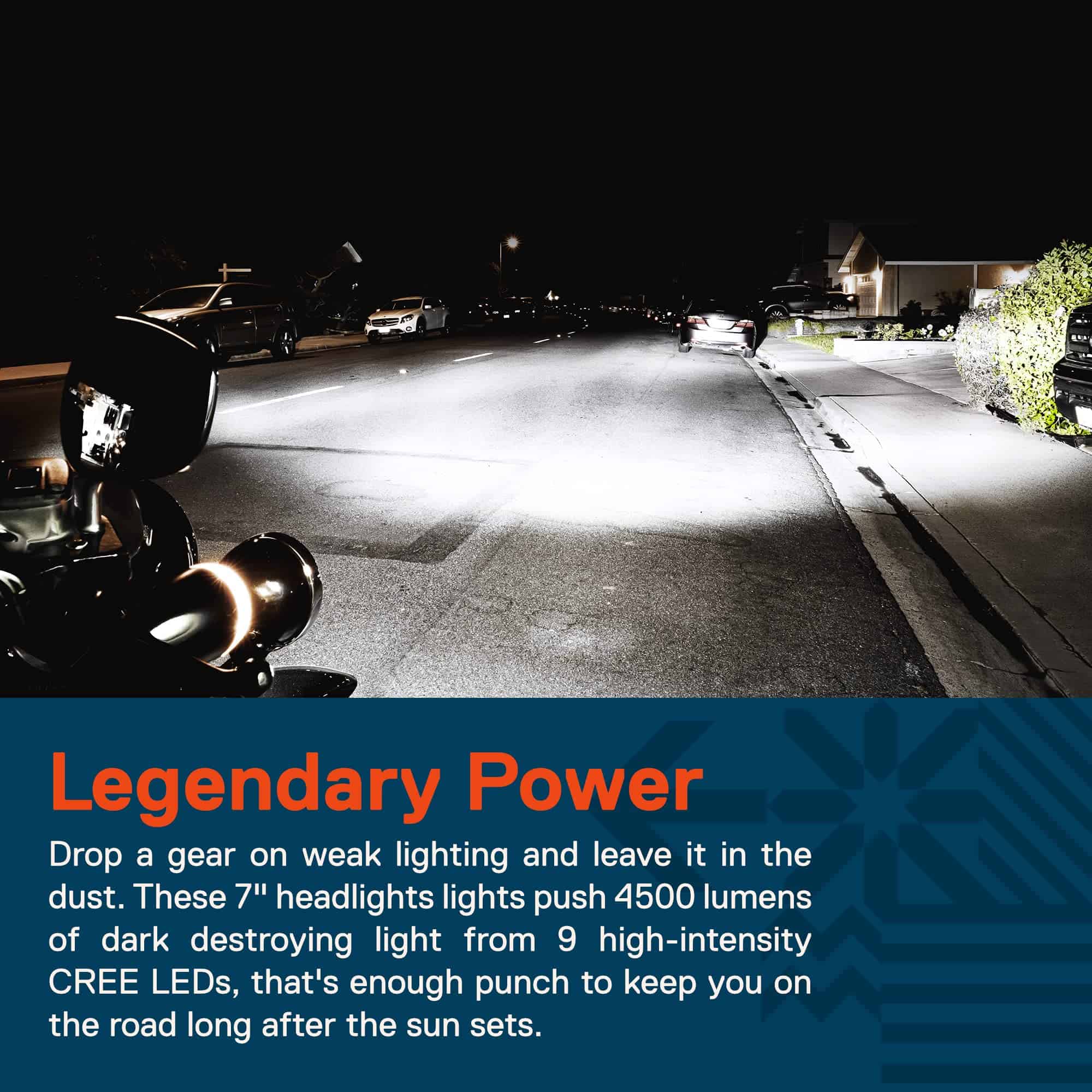 Faro LED de 7″ TRUE MODS para Harley Davidson + Soporte de