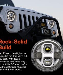 4. CONSTRUCCIÓN SÓLIDA – Nuestros faros de 7 pulgadas pueden resistir un golpe, pero no te golpearán a ti. Con carcasa resistente de aluminio fundido a presión y lente anti-UV de policarbonato, están diseñados para resistir todo lo que la carretera te lance.