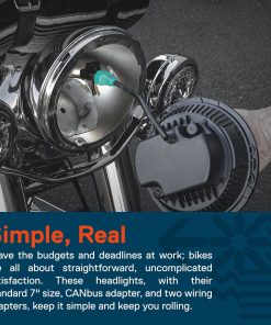 Nacido Para la grandeza Infinitamente personalizable, ferozmente único y siempre reconocible, tu moto es tu orgullo. Deja que tu estilo brille con este faro LED de 7″ para tu Harley Davidson. Con un nuevo diseño dinámico, un halo DRL blanco penetrante y opciones de cara en negro o cromo, estos faros te acercan un paso más a convertir tu moto en la leyenda que nació para ser. Conquista Todo Nada detiene a una Harley, no el calor, no la lluvia, ni siquiera las montañas. ¿Por qué tu faro debería ser diferente Como tu moto, nuestros faros están diseñados para llevarte a donde quieras ir. El cuerpo de aluminio duradero, el disipador de calor integrado y el puerto de eliminación de humedad protegen la electrónica de tu luz, mientras que la lente con clasificación de impacto desprecia los escombros de la carretera como si ni siquiera estuvieran allí. Dulce Sencillez ¿Buscas un buen rato de garaje con tu moto No arruines un buen momento con piezas que no encajan correctamente. Con un adaptador CANbus integrado para eliminar el parpadeo en motos más nuevas, dos arneses adaptadores que cubren cada modelo de Harley y un soporte de montaje del mismo color, nuestros faros incluyen todo lo que necesitas para una instalación suave y sin problemas. Qué Incluye (1) Faro Redondo de 7″ para Harley Davidson Soporte de Montaje – NEGRO (1) Soporte de Montaje de Faro (1) Manual de Instrucciones (1) Kit de Faro DOT Approved HALO DRL de 7″ HDL1553 para Harley Davidson – NEGRO (1) Faro de 7″ (1) Convertidor H4-H11 (1) Convertidor de 4 Pines H4 (1) Cable de Extensión Rojo de 39″ con Conector (1) Manual de Instrucciones