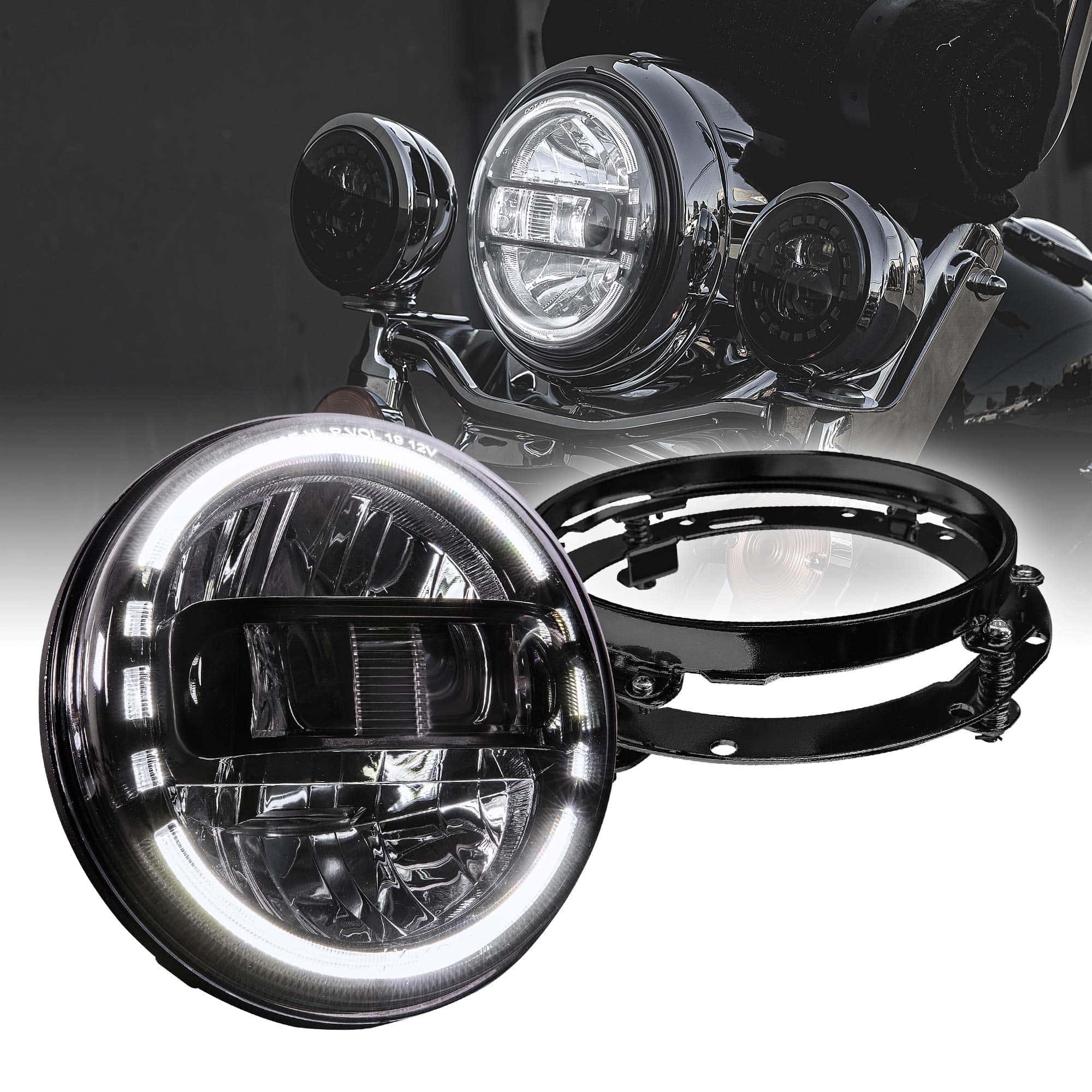 Faro LED TRUE MODS de 7″ para Harley Davidson + Soporte de