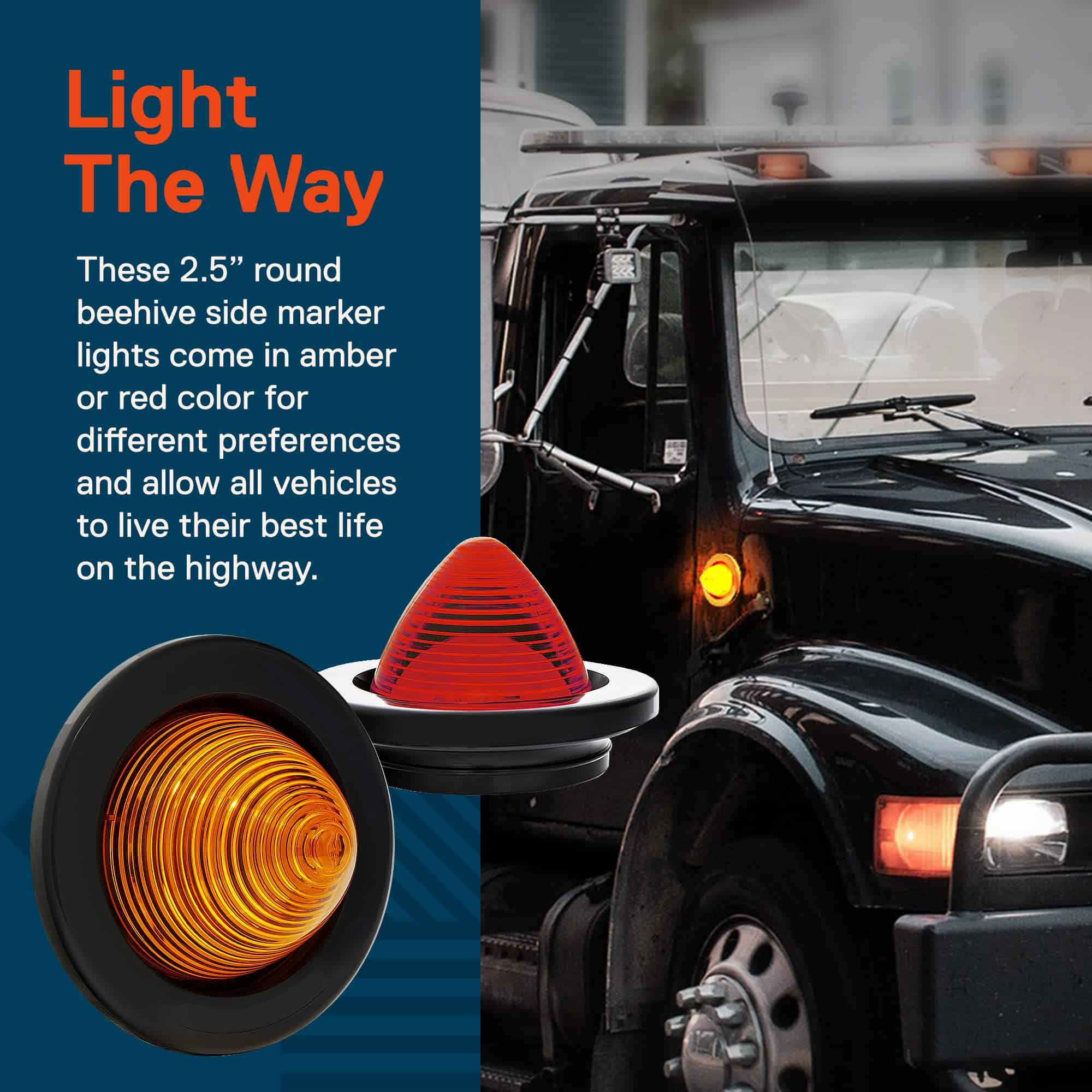 5. ILUMINE EL CAMINO: Estas luces laterales de marcador en forma de panal de abeja de 2.5 pulgadas vienen en color ámbar o rojo para diferentes preferencias y permiten que todos los vehículos vivan su mejor vida en la autopista.