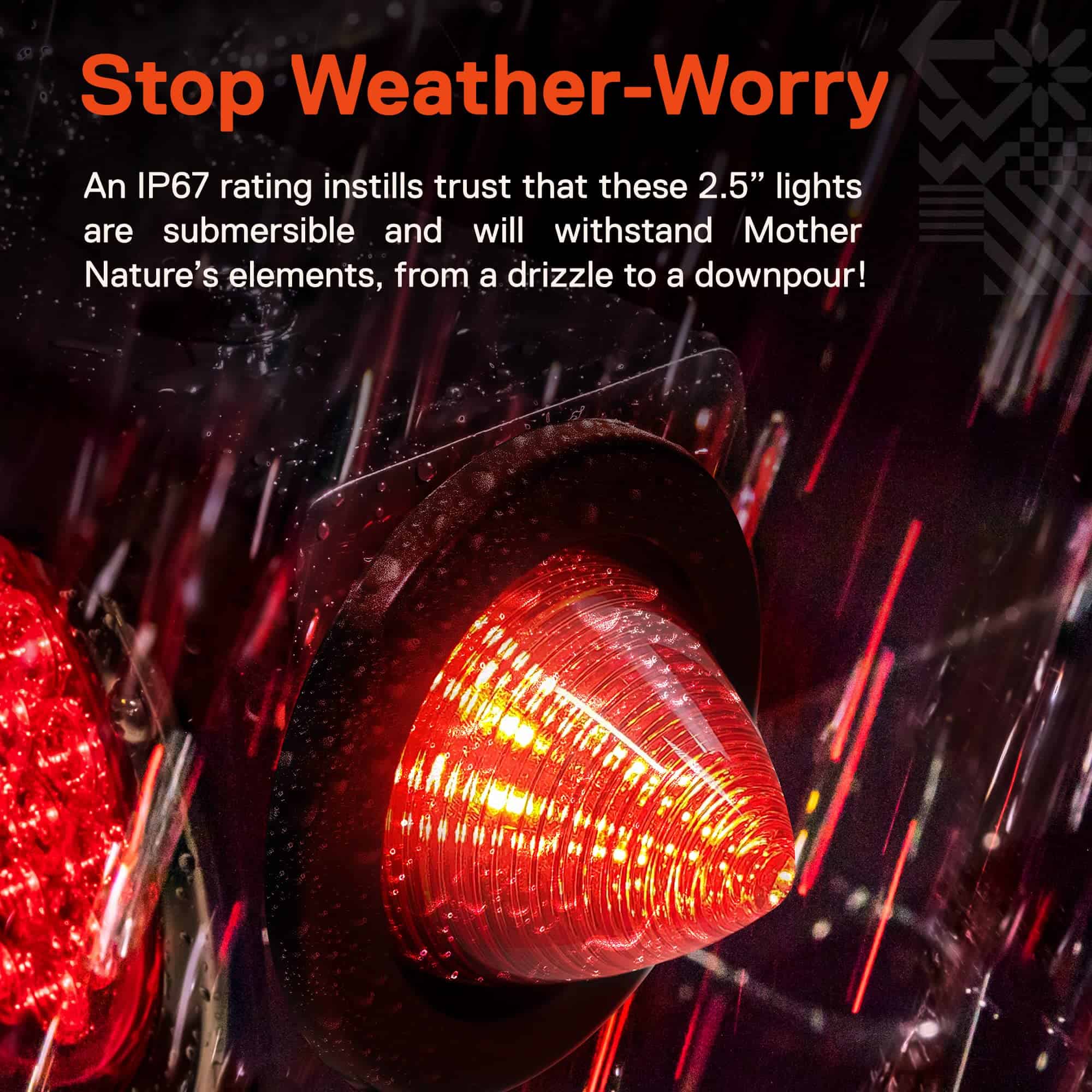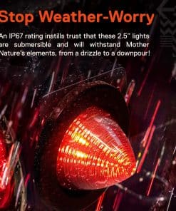 4. DETÉNGASE A PREOCUPAR POR EL CLIMA: Una calificación IP67 infunde confianza en que estas luces de 2.5 pulgadas son sumergibles y soportarán los elementos de la Madre Naturaleza, desde lloviznas hasta aguaceros.