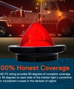 1. 100% COBERTURA HONESTA: La calificación SAE P2 proporciona 90 grados de cobertura completa, o 45 grados a cada lado de la línea central de la luz de marcador, para cruceros triunfantes en las noches más oscuras.
