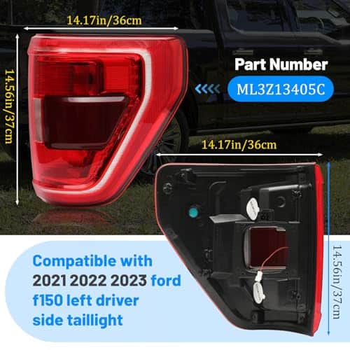 1. Exacta coincidencia con el original: El faro trasero compatible con Ford F150 F-150 XLT 2021 2022 2023 con modelos de faros traseros halógenos y punto ciego, lado derecho de ensamble trasero de luz de freno, reemplaza ML3Z13404C.