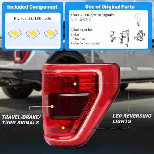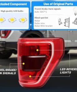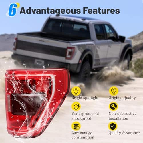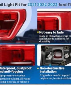 3. Excelente rendimiento: Compatible con los faros traseros de Ford F150 2021-2023, estos faros traseros ayudan a mejorar la seguridad al conducir al garantizar una alta luminosidad incluso en condiciones de visibilidad pobre como lluvia, nieve y niebla.