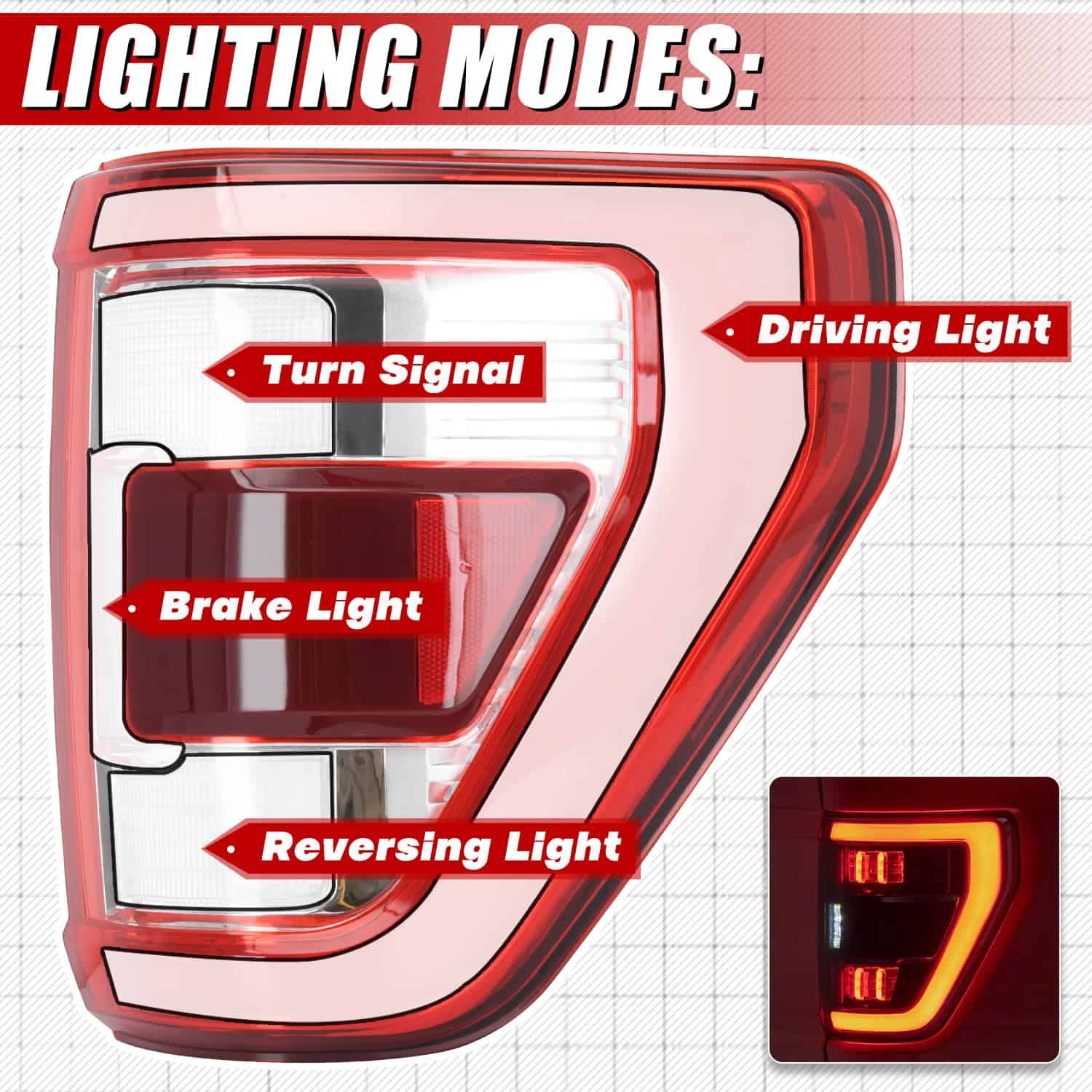 Faro trasero LED blanco del lado derecho con detector de