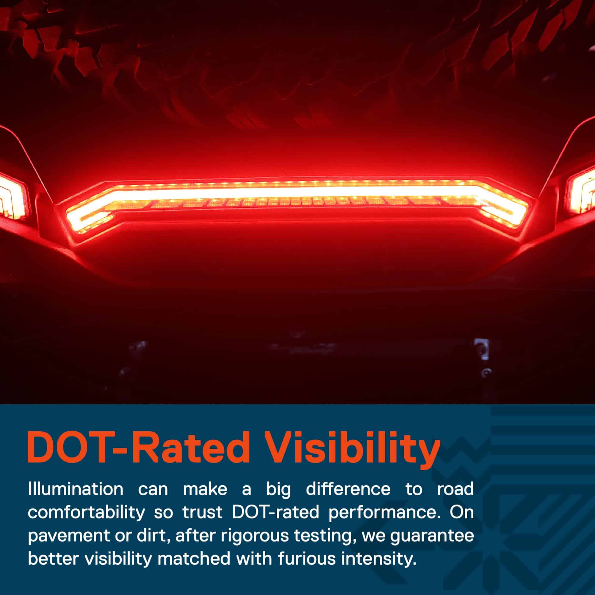 El Polaris puede aguantar un golpe, pero el brillo mejorado evita daños innecesarios. Un tercer freno adecuado homologado por DOT podría ser la diferencia entre recibir un golpe trasero y mantenerse seguro. Dos estilos traseros llamativos dan a otros mucha advertencia. El F-1 Intermitente parpadea ferozmente mientras que la versión estándar se ilumina sólidamente. Cuando tu pie toca el pedal y la luz receptiva se enciende, los demás conductores deben dejar mucho espacio. Ingeniería para la Simplicidad