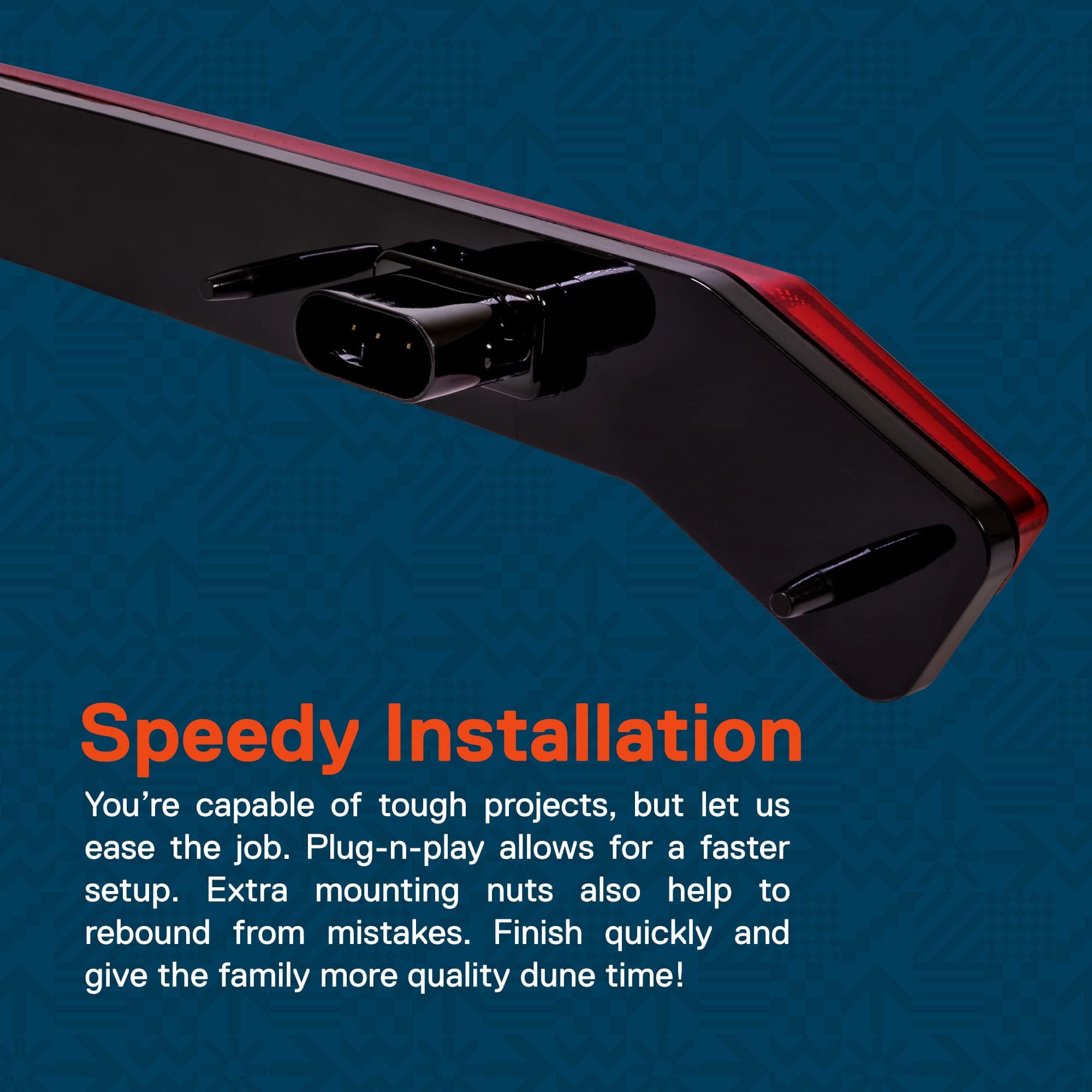 El rock crawling sirve como un valioso uso del tiempo, pero solo hay tantas horas en un día. Por eso nuestros ingenieros derramaron sangre, sudor y lágrimas para perfeccionar un proceso de instalación sin dolor. Una construcción fácil de plug-n-play permite una incorporación sin problemas en la mayoría de modelos Polaris RZR XP 1000 o Turbo. También se complementa y se adapta bien con los faros traseros Thunder (se venden por separado). Para eliminar el estrés, incluso se incluyen tuercas de montaje adicionales. ¡Deshazte del garaje y vuelve a las extensas dunas de arena en tiempo récord!