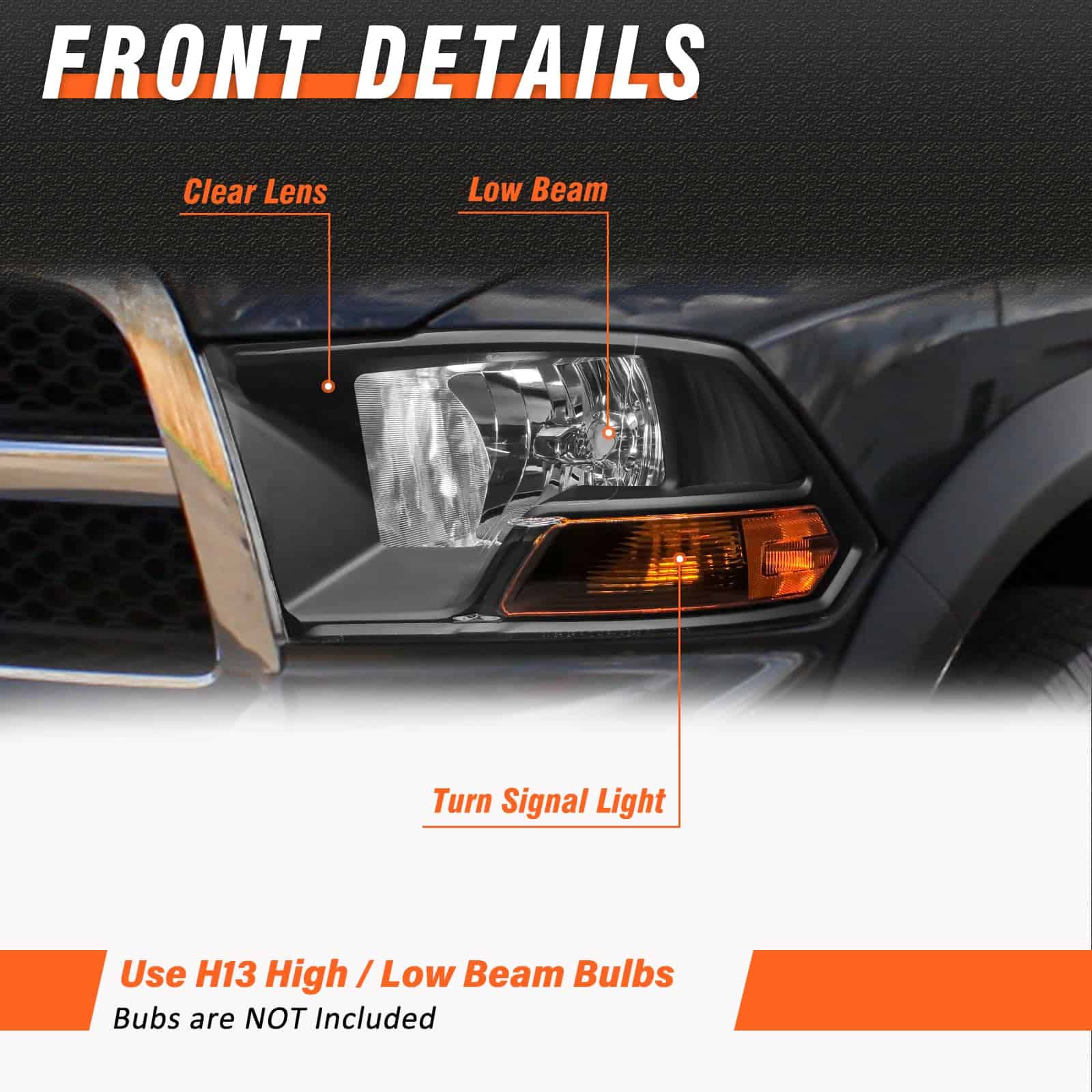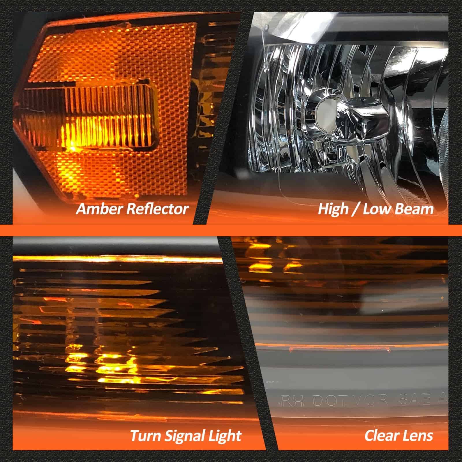 Faros AXL de alta calidad para Dodge Ram 1500 2500 3500 Pickup 2009 2010 2011 2012 Doble Cabina. Con carcasas cromadas y reflector ámbar, estos faros ofrecen un rendimiento excepcional y una durabilidad que cumple con los estándares más altos. Su nivel impermeable IP65 garantiza que no haya acumulación de agua en la lámpara, lo que los hace ideales para una variedad de entornos. Los cuencos y reflectores de alta calidad proporcionan una iluminación más brillante, ayudando a mejorar la seguridad al conducir al hacer que sea más fácil para el tráfico que se aproxima notarte durante la noche. Con un ajustador incluido, puedes personalizar la luz según tus necesidades. La instalación es rápida y sencilla gracias al diseño plug-and-play sin necesidad de técnicas complicadas. Viene en un juego de dos con lados del conductor y del pasajero para una fácil sustitución. Además, ofrecemos una garantía de 12 meses para todos nuestros productos, y nuestro equipo de servicio postventa está siempre disponible para ayudarte con cualquier problema que puedas encontrar.
