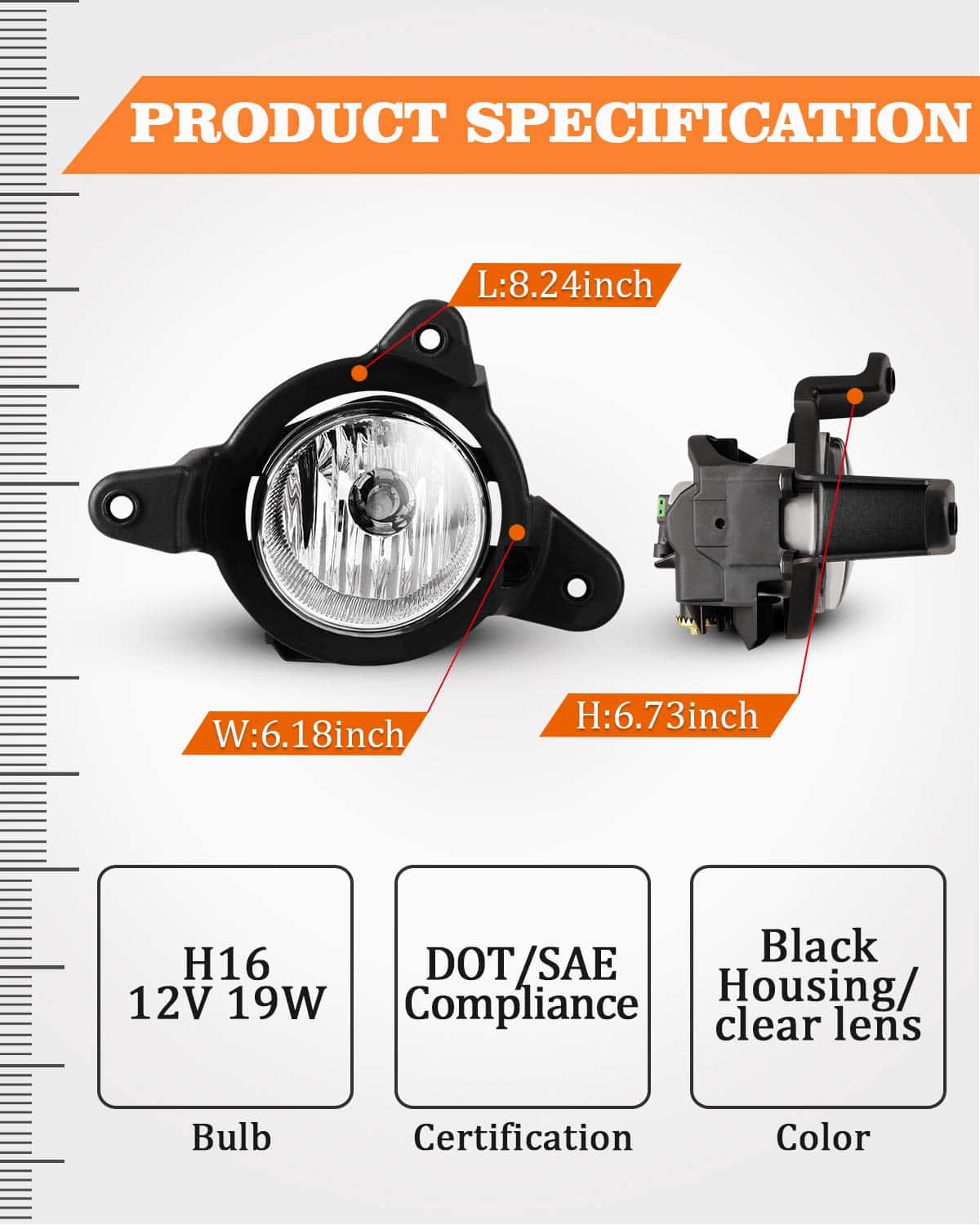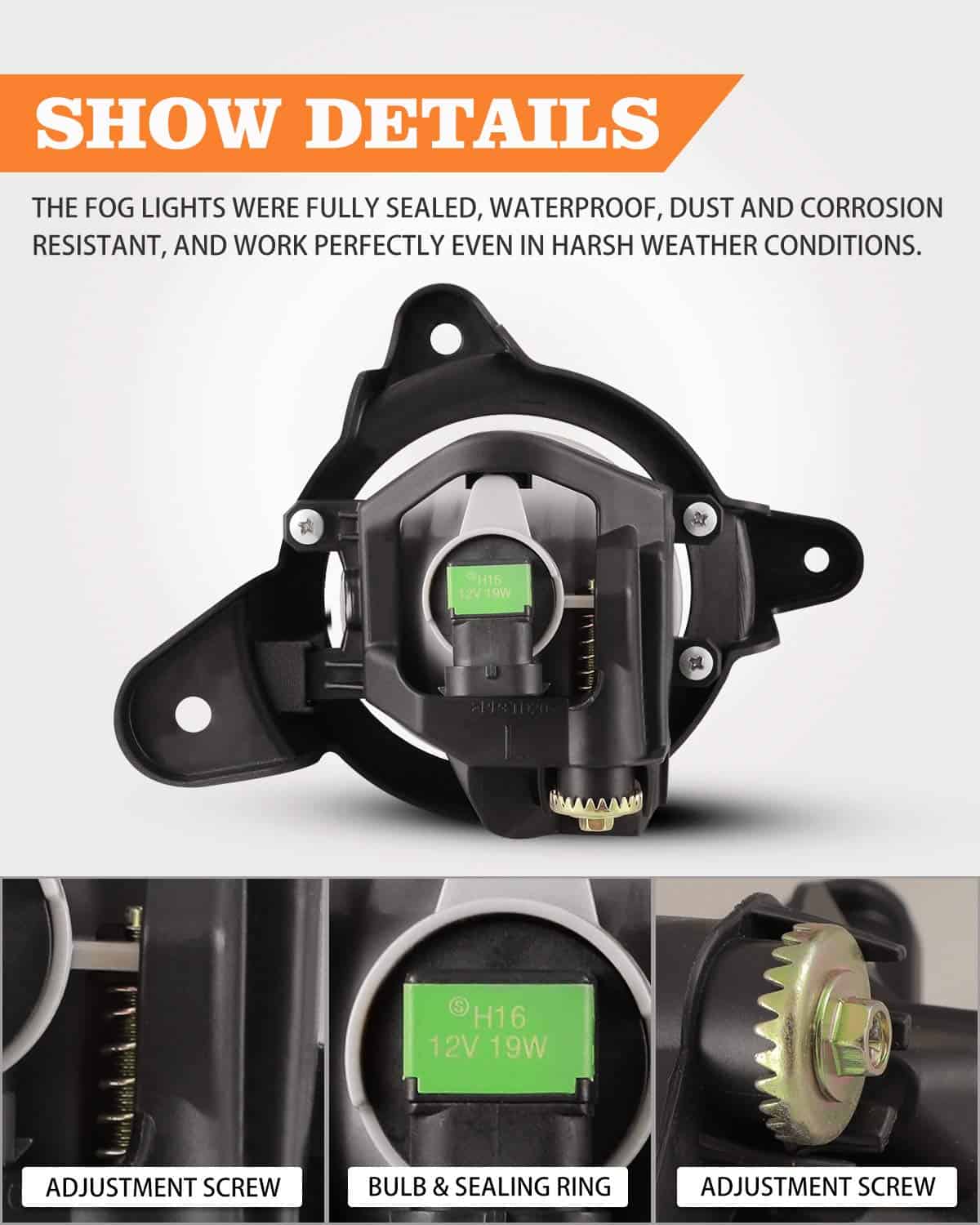 3. Iluminación Brillante: Los faros de niebla vienen con un par de bombillas de luz H16 12V 19W (las bombillas ya vienen preinstaladas en los faros de niebla), lo que le permite ver y ser visto por los conductores que vienen en sentido contrario incluso a través de una espesa niebla.