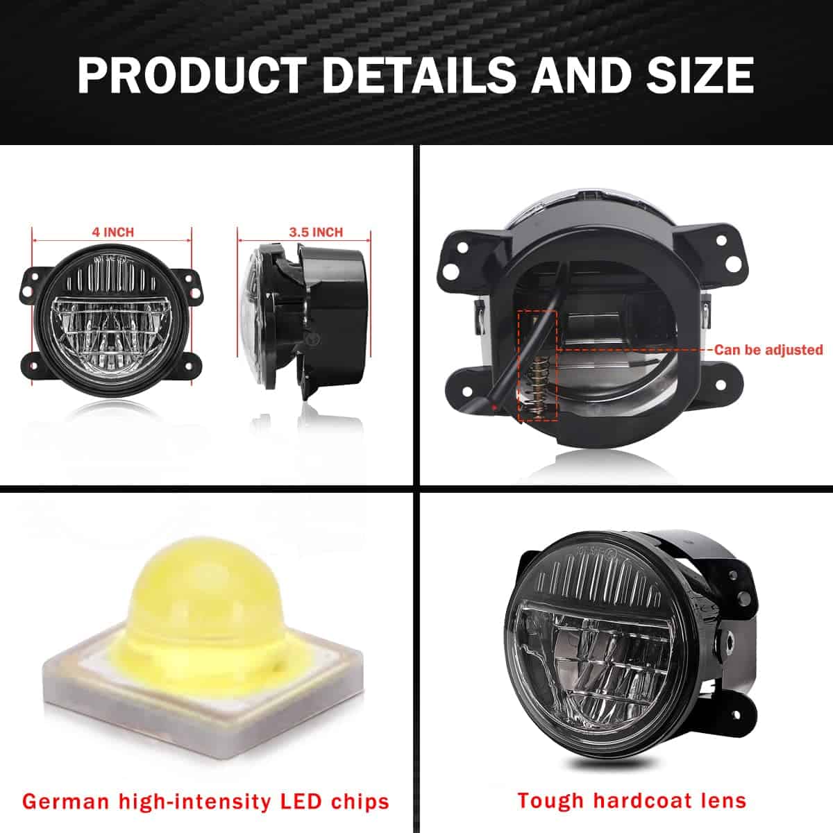 Faros de Niebla LED de 4 Pulgadas AUDEXEN, diseño sonriente, reemplazos de parachoques delanteros de faros de niebla compatibles con Jeep Wrangler JK JKU TJ CJ LJ Freedom Edition 2007-2018, lámparas de niebla, cumple con DOT, negro. Nuestros faros de niebla son legales en la carretera y proporcionan una visibilidad máxima y seguridad en condiciones de niebla. Plug and play, la instalación es bastante sencilla, en su mayoría no se requiere cableado adicional. El diseño sonriente actualizado realzará tu vehículo con un estilo a la moda y una apariencia llamativa. Compatibles con Jeep Wrangler JK JKU TJ LJ Freedom Edition 2007-2018, Sahara, Rubicon Sport, Willys Wheeler, Dragon Edition, Unlimited Hard Rock Edition, X Sport Utility 2-Door & 4-Door, Wrangler JL con parachoques plástico OE y parachoques de mercado secundario que utilizan la ubicación de montaje OEM «4 tornillos». NOTA: Nuestros faros de niebla de 4″ no son compatibles con Wrangler JL Sport, parachoques delanteros de acero Rubicon y modelos Sport. Disfruta de 12 meses de garantía. Si no encaja en tu vehículo, devuélvelo. Si causa código de falla, parpadeo o humedad dentro de la luz, contáctanos para solución. Si está defectuoso o las bombillas de luz se apagan, obtén un reemplazo nuevo. Para cualquier problema con las luces AUDEXEN, ¡no dudes en contactarnos!