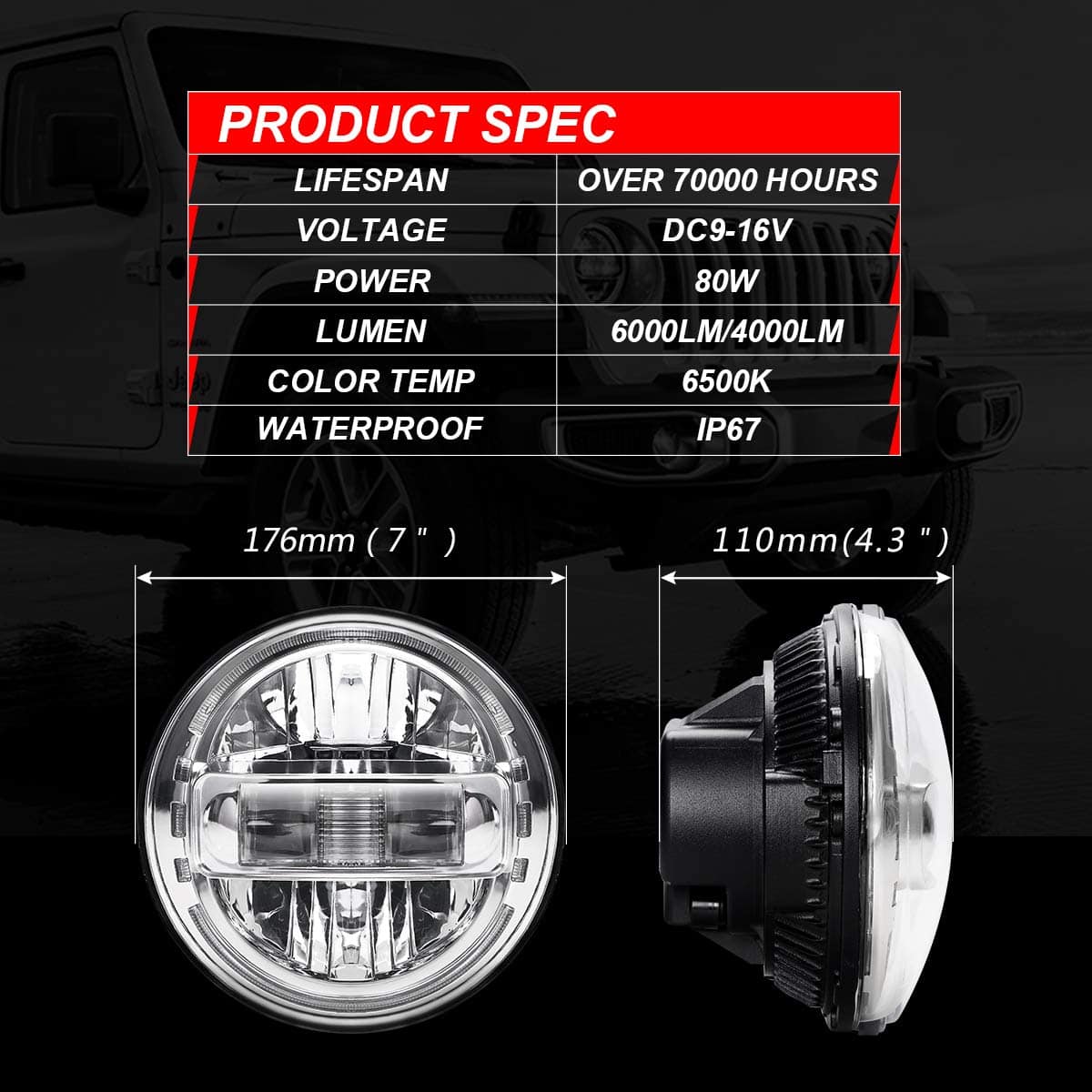 Descripción: Voltaje: CC 9V-32V Índice de impermeabilidad: IP 67 Vida útil: más de 70000 horas Temperatura de color: 6500K/Blanco Lúmenes: Luz alta (6000LM) y luz baja (4000LM) Compatible con: Jeep Wrangler TJ 1997-2006 Jeep Wrangler TJ Unlimited 2003-2006 Jeep Wrangler JK 2 Puertas 2007-2017 Jeep Wrangler JK 4 Puertas Unlimited 2007-2017 AM General HUMMER 1992-2001 Hummer H1 y H2 (2003-2009) Hummer H2 necesita adaptadores 9007 a H4, paquete no incluido Paquete incluido: 2 faros de 7 pulgadas 2 adaptadores H4 a H13 Este es un producto asequible para tus necesidades de restauración. Este producto de ajuste directo y alta calidad se fabrica de acuerdo con los estándares de la industria para garantizar la durabilidad y confiabilidad del producto. Excelente servicio postventa: Si tienes problemas (defectuosos o dañados) con nuestros productos, simplemente contacta a COWONE y te ayudarán. Así que siéntete seguro al comprar con COWONE.