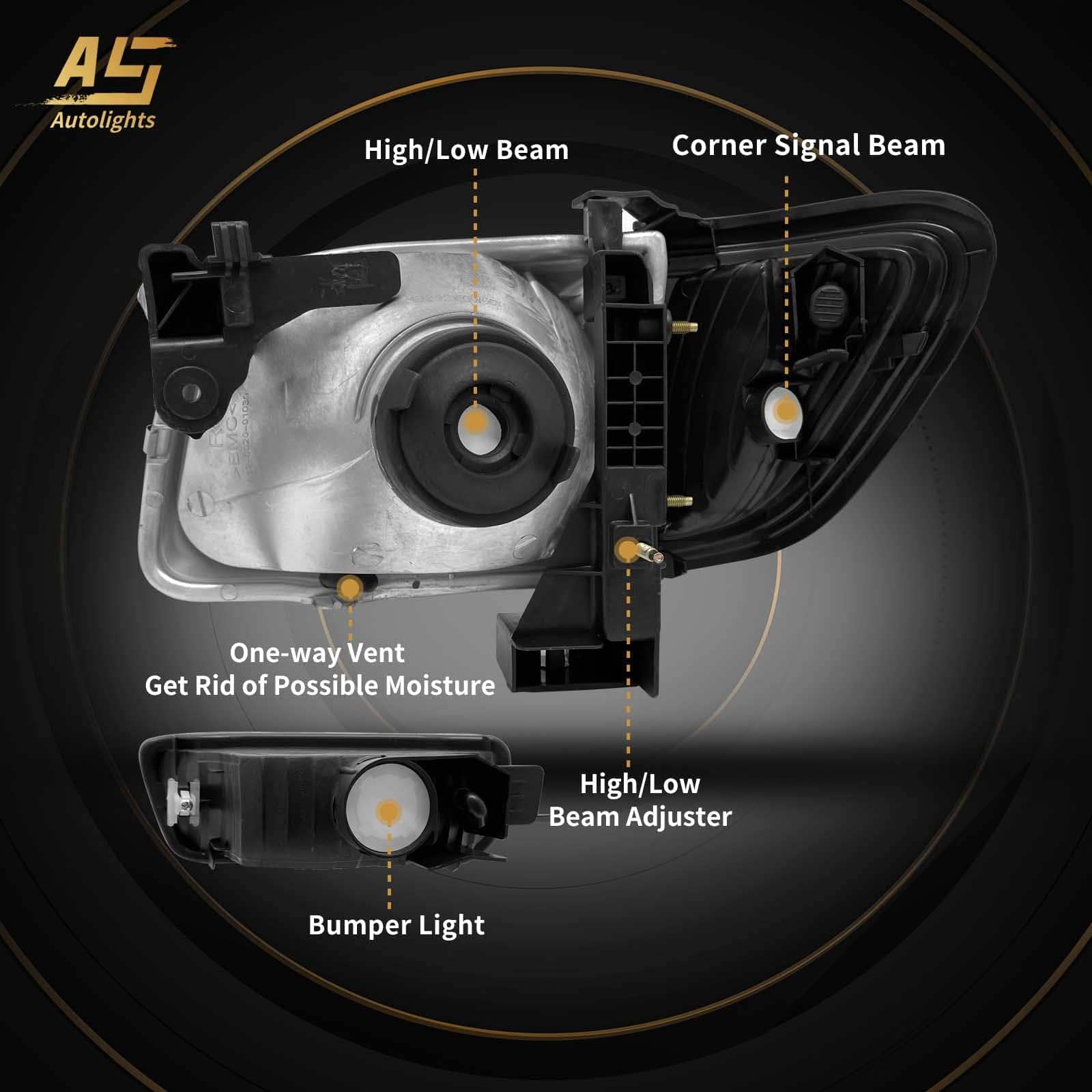 1. Conjunto de faros de repuesto de ajuste OEM directo para Tacoma 2001 2002 2003 2004. Bombillas no incluidas.