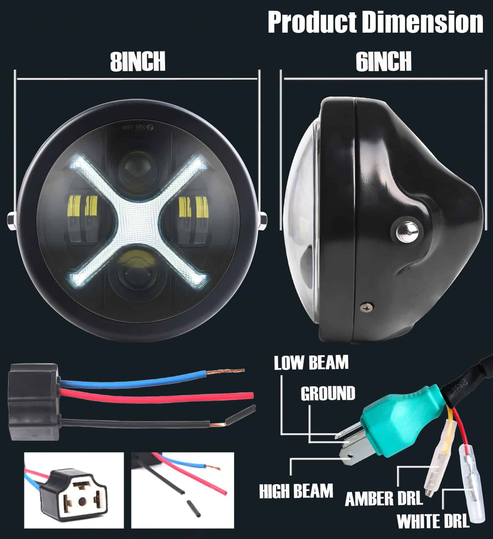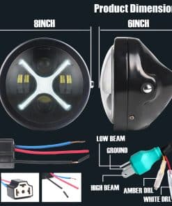 1. Faros delanteros de motocicleta LED mejorados: Faros delanteros de motocicleta LED de 7 pulgadas con DRL «X-Shape» Blanco/Rojo, dan a tu motocicleta un aspecto deportivo, hacen que tu vehículo sea único y con estilo. 2. Rendimiento brillante: voltaje de 12V DC, fuentes de luz potentes de Alto Haz 60W (4200lm)/Bajo Haz 40W (2800lm), mucho más brillantes que los faros halógenos originales, iluminan bien el camino. 3. Instalación fácil: enchufar y listo, viene con adaptador adicional para aquellos modelos que no son de enchufe H4, instalación fácil en 20 minutos o menos. La carcasa de los faros delanteros de motocicleta con faro LED de 7 pulgadas se adapta a la mayoría de las motocicletas con tubos de horquilla de 32-40 mm. NOTA: Los soportes de montaje de tubo de horquilla vienen con el paquete, no son redondos y solo se ajustan a tubos de horquilla de 1.26″-1.57″. 4. Compatibilidad: Conjunto de faros delanteros universales redondos de motocicleta compatibles con CB400/CB1300/CB250/CB600F/CB919 Hornet/Buell Blast, Chopper personalizado, Bobber, Cafe Racer, etc., con faros delanteros LED de 7 pulgadas. 5. Incluye: 1 x Faro delantero LED de 7 pulgadas con carcasa de faro de motocicleta + 1 x Soportes de montaje de faro de motocicleta + Instrucciones de instalación.