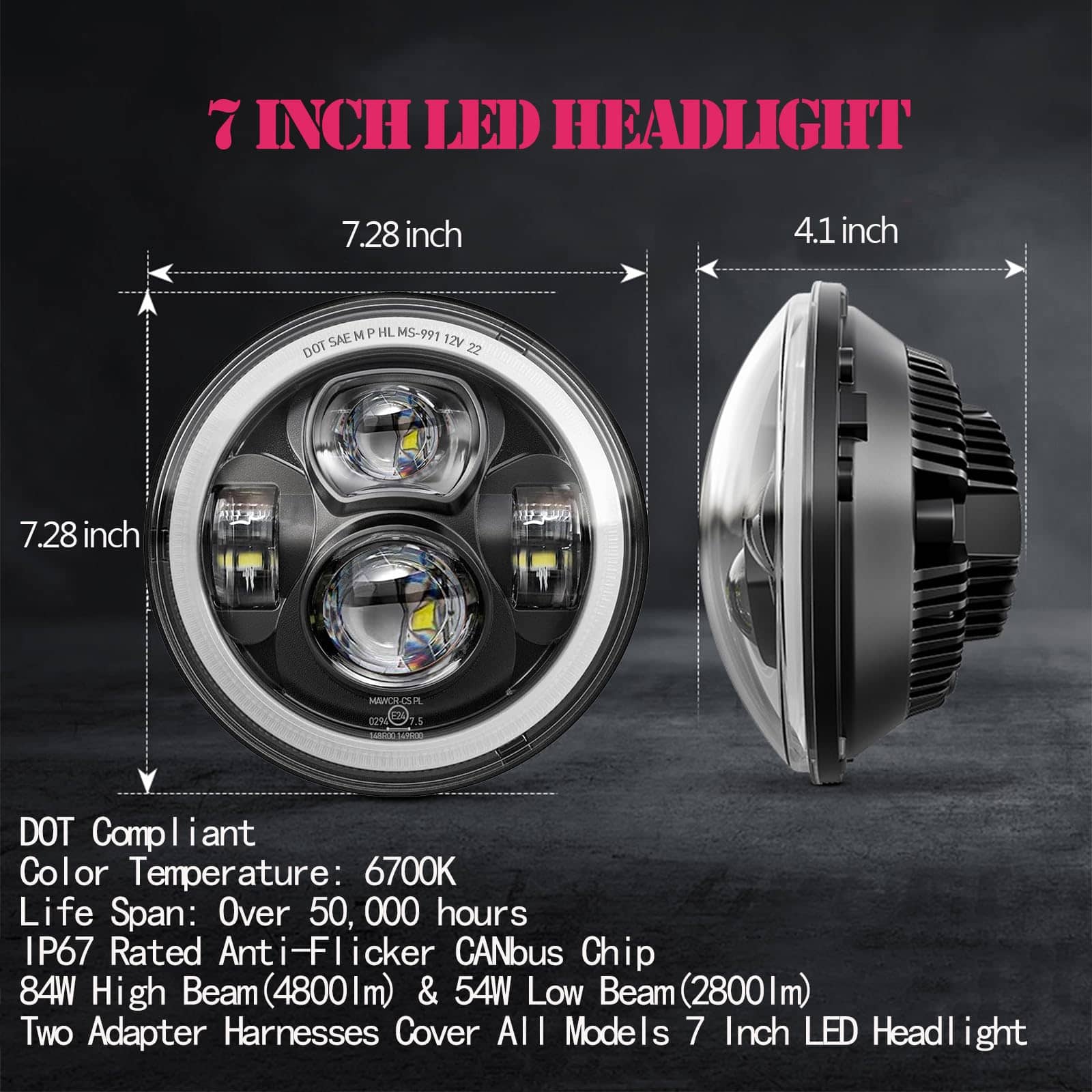 4. El LED más nuevo fabricado con chips LED de alto rendimiento 100% originales. Aprobado por DOT y SAE, Calificación E-Mark, Extremadamente brillante en comparación con la lámpara de fábrica OEM. No cegará a otros motociclistas o conductores como otros faros.