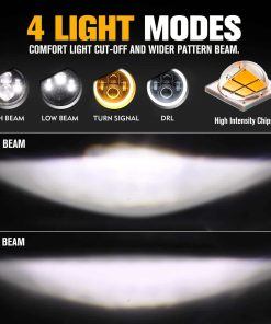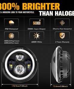 Faros delanteros LED de 7 pulgadas para motocicletas MGLLIGHT están fabricados con chips LED originales, 300% más brillantes que otros faros delanteros LED originales de halógeno de 7 pulgadas y brindan un hermoso patrón de luz y una línea de corte perfecta. También, este faro delantero de 7 pulgadas ha sido certificado por DOT y es legal en la carretera. Para la potencia, el faro delantero LED de 7 pulgadas para motocicletas tiene 4800LM en alto beam y 3200LM en bajo beam a 6000K para cada faro delantero. Protección de bajo voltaje, Chip de controlador de corriente constante de alta precisión.
