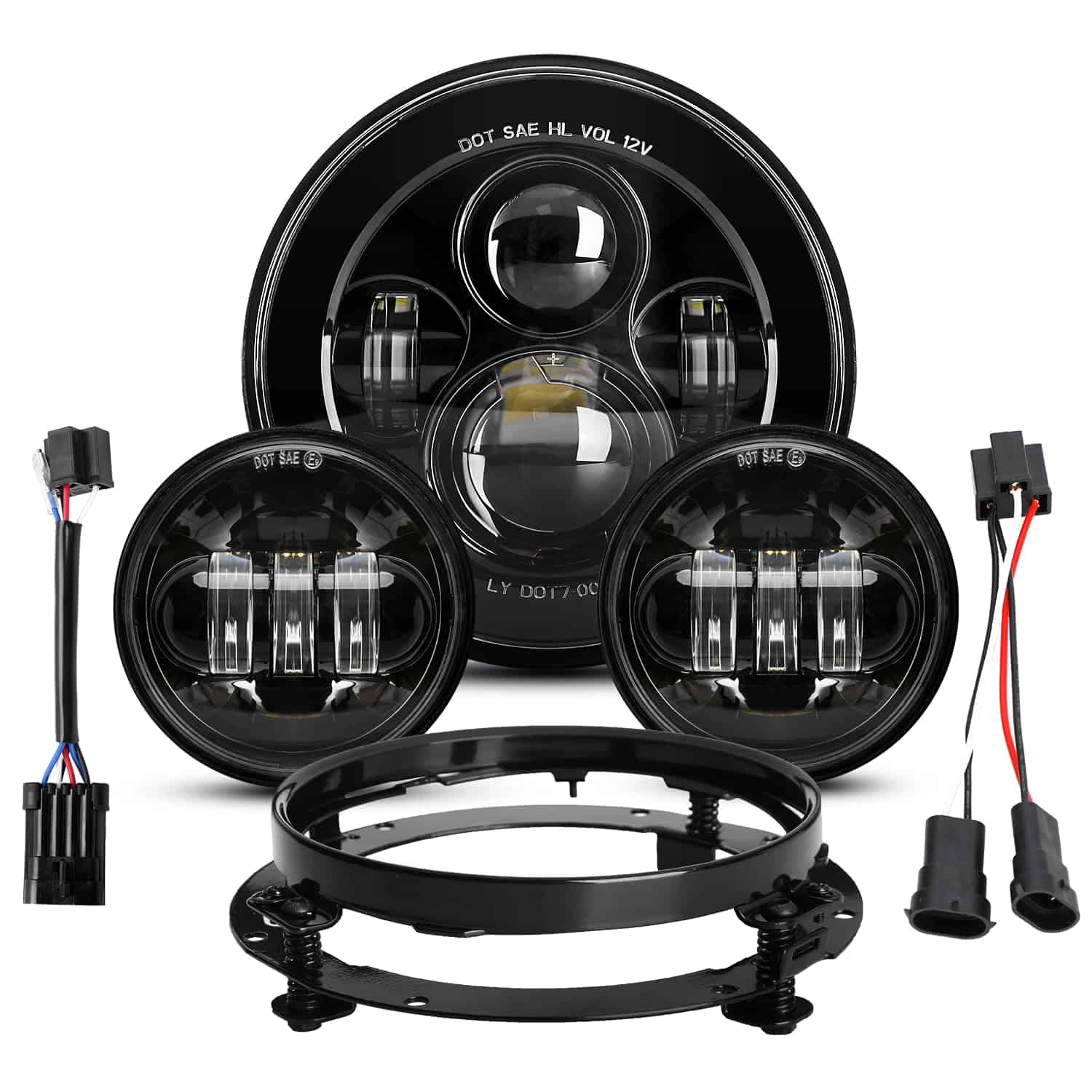 Para el road king 2016, tiene dos enchufes especiales para el faro, uno para luz alta y otro para luz baja, necesitarán este adaptador, ASIN: B01N3836IQ.