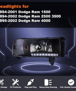 Descrición: Los faros delanteros led Nixon Offroad para Dodge Ram son una excelente opción para mejorar la visibilidad y el estilo de su vehículo. Estos faros delanteros están diseñados para adaptarse a los modelos 1994-2001 Dodge Ram 1500, 1994-2002 Dodge Ram 2500, 1994-2002 Dodge Ram 3500 y 1995-2002 Dodge Ram 4000.