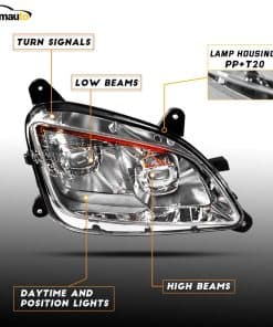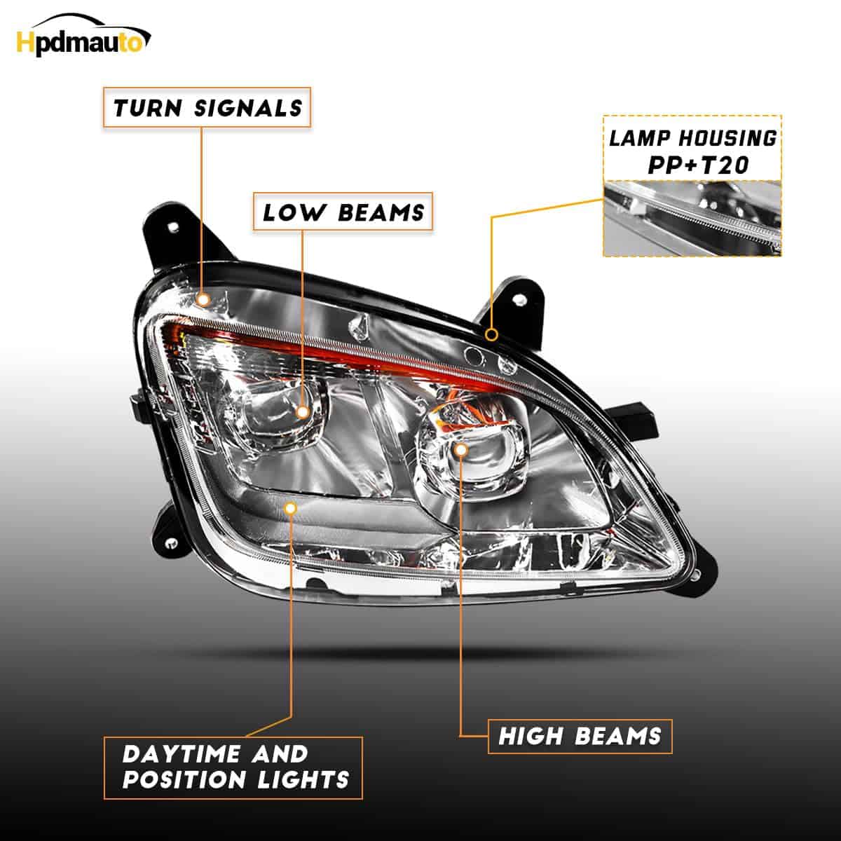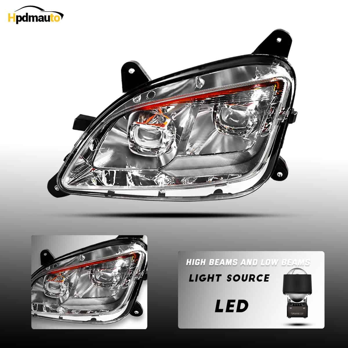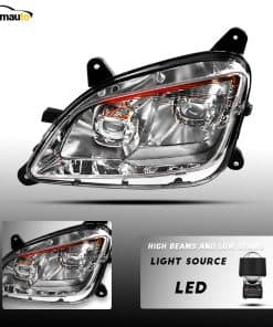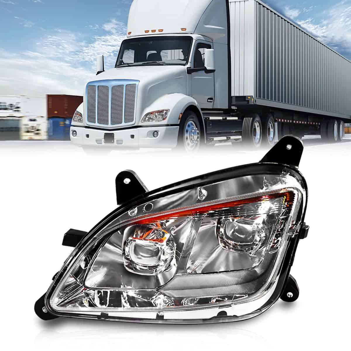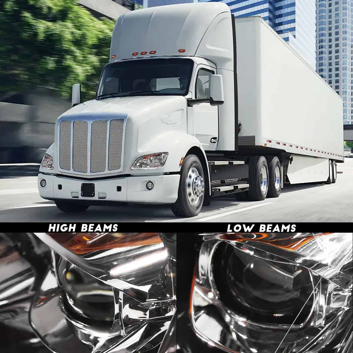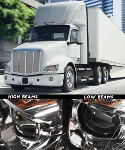Conjunto de faros delanteros LED para camiones Peterbilt 579 y 587 Clase 8 del 2011-2023. Este conjunto de carcasa cromada de repuesto es ideal para quienes desean actualizar o reemplazar sus faros delanteros actuales. Compatible con Peterbilt 587 del 2011-2018 y Peterbilt 579 del 2013-2021, este conjunto cumple con todos los estándares de seguridad del DOT y supera las especificaciones OEM.