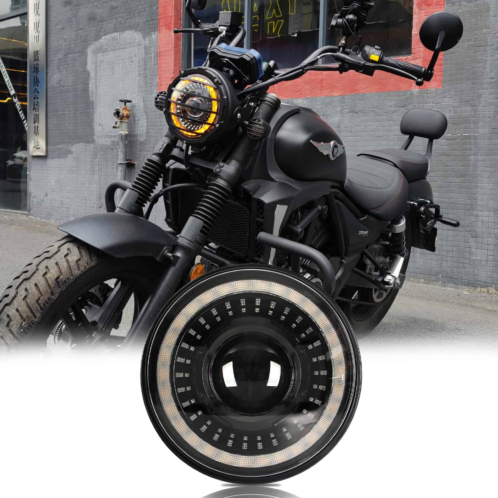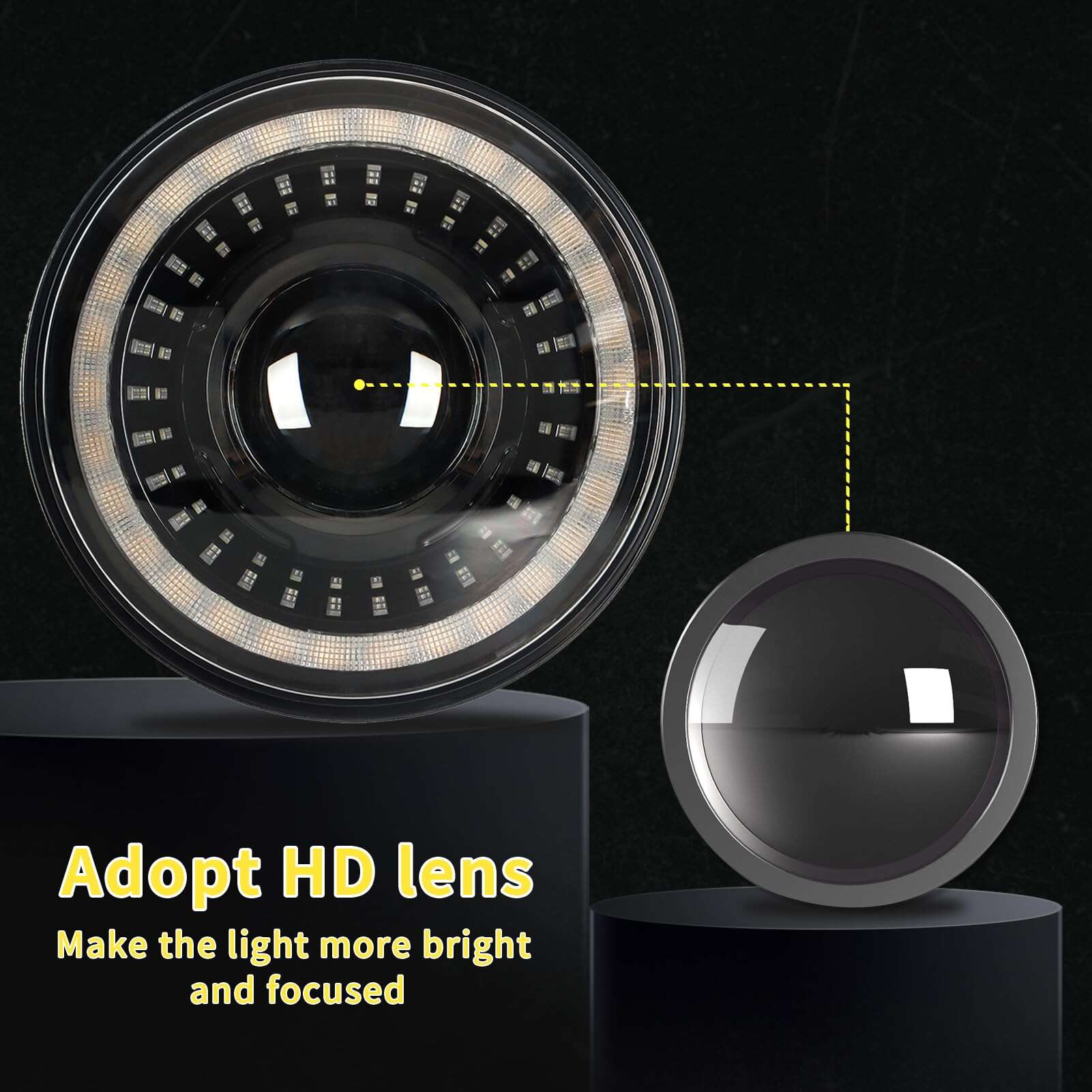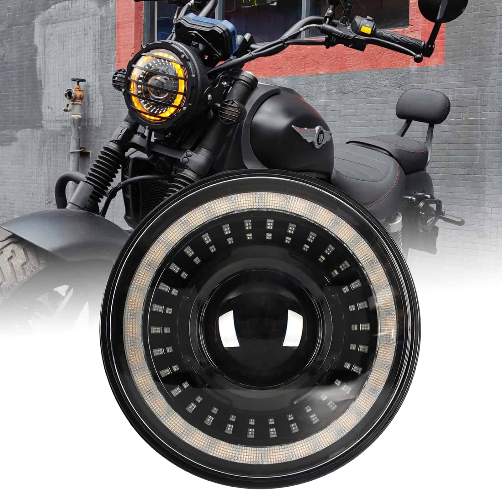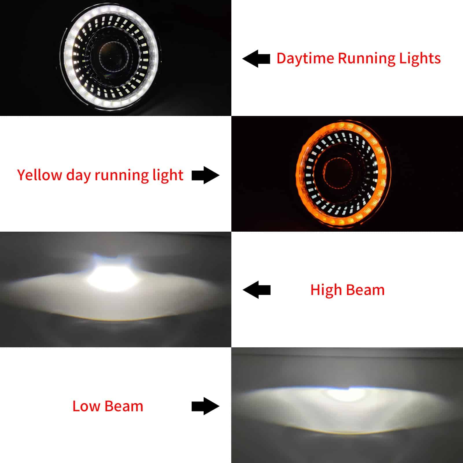5. Faro LED de 7 pulgadas con Halo de Bienvenida Gradient único de HARPUOU compatible con motocicletas y autos que tienen un faro de 7″. Si lo instala en una motocicleta, puede elegir entre DRL blanco o DRL ámbar según sus necesidades. Si lo instala en autos, por favor compre 2 unidades, blanco como DRL, ámbar como señal de giro.