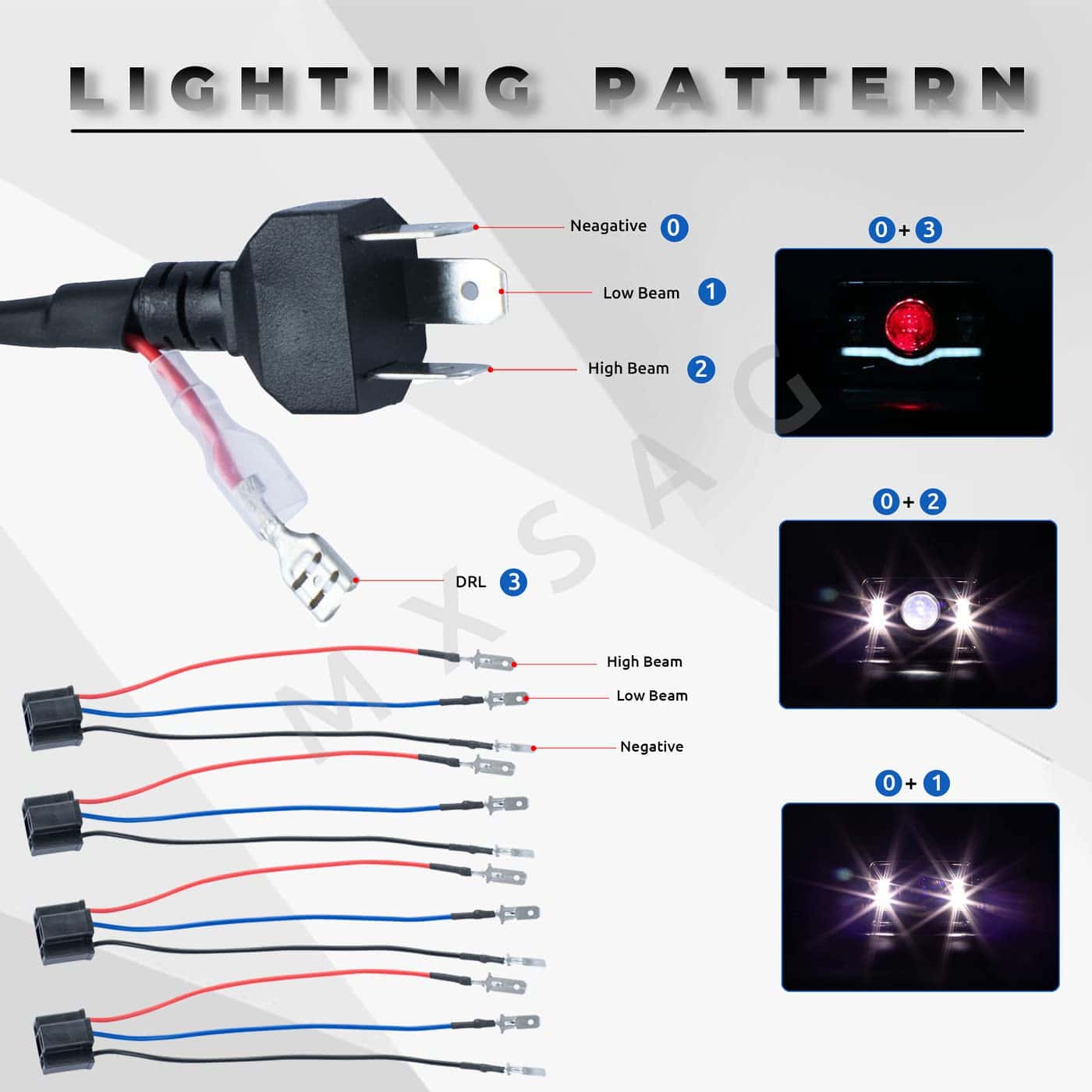 Patrón de luz baja – proporciona un amplio haz de iluminación general y permanece iluminado todo el tiempo