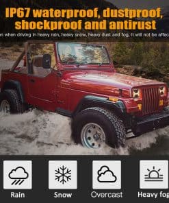 1. Es un fenómeno normal que haya una ligera neblina en los faros del Wrangler, causada por la diferencia de temperatura. Cuando llueve, se calienta y la lente se empaña. Solo necesita dejarlo encendido durante 2 horas. La neblina desaparece naturalmente, lo cual no afecta su uso.